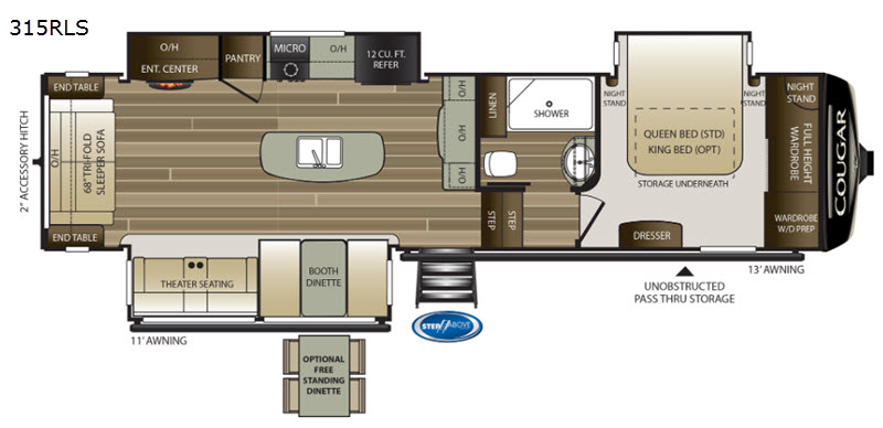 You won't find anything else quite like the Cougar fifth wheels and toy hauler from Keystone RV! Quality construction, stylish features, and technological innovation are just a part of what makes the Cougar a best-selling brand. You'll find an exclusive 90-degree Maxturn technology which enables you to maneuver better than ever, and the iN Command Pro Series master control panel gives you complete control over the power, slides, awnings, HVAC, and more. You will especially appreciate the heated and enclosed underbelly, which is a part of Keystone's Climate Guard protection, because it will make it possible to vacation any time of the year. And don't forget about the 81-gallon fresh water tank which will allow you to carry more fresh water so that you can stay away longer.