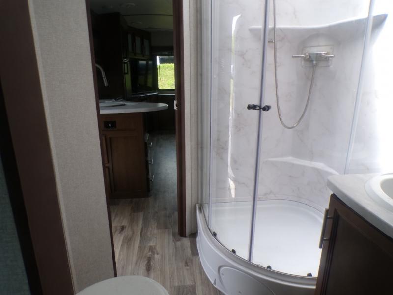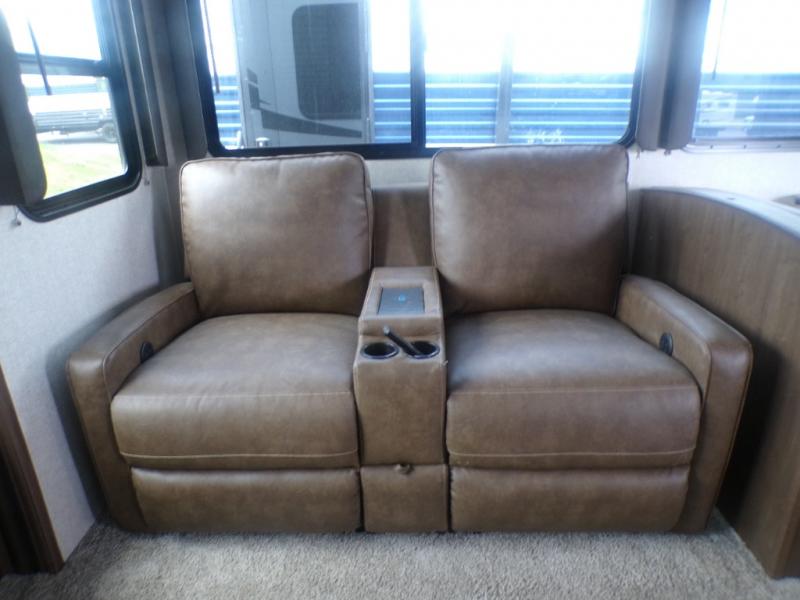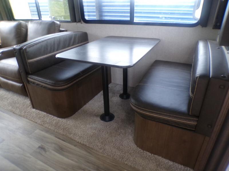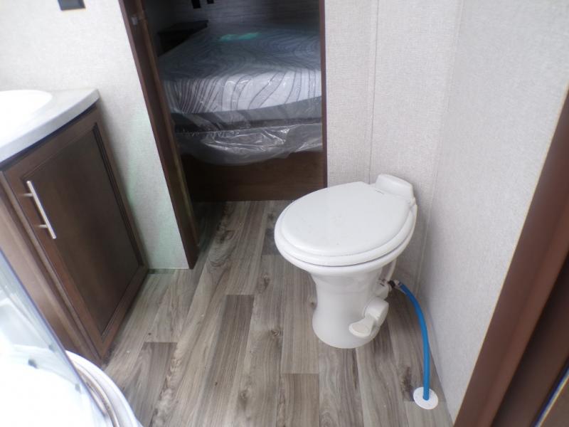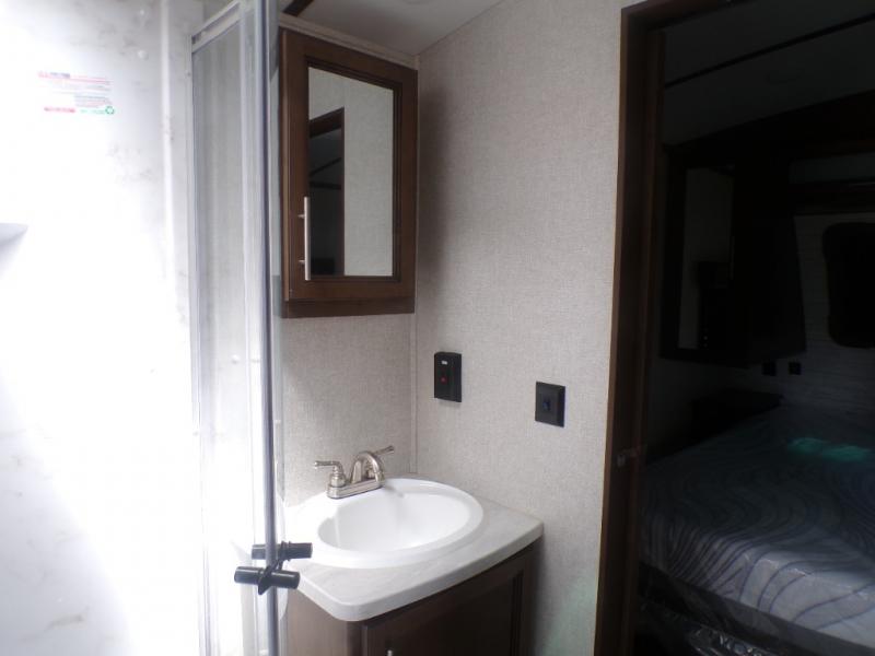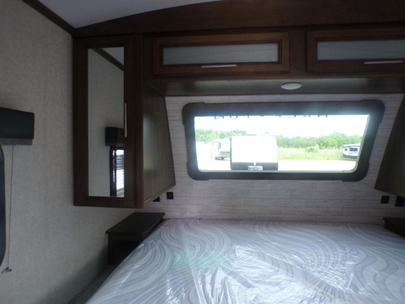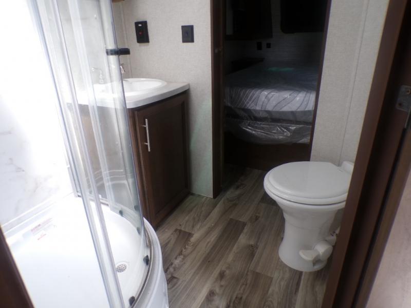 As you explore all that nature has to offer, you'll appreciate all that this Cougar Half-Ton travel trailer has to offer, as well! A master suite up front will provide the ultimate luxury as you drift off to sleep each night, and you'll be able to conveniently sneak into the radius shower when you wake up in the morning. Choose to prepare breakfast outside underneath the sunshine at the outdoor grill, and if you need a little shade while you eat, the 16' power awning will do the trick.