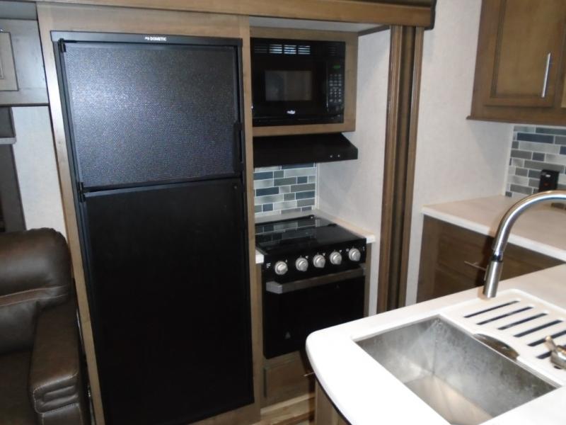 When you are ready to enjoy the fresh outdoor air, you'll want this Cougar Half-Ton fifth wheel to be there with you! The interior will feel spacious and comfortable because of the opposing slides, and you'll have plenty of seating to offer to any friends that stop by with the two recliners in the back, the booth dinette, and the 68" tri-fold sleeper sofa. You can sit down and chat, or you can head outside to grab some fresh air underneath the 10' power awning.