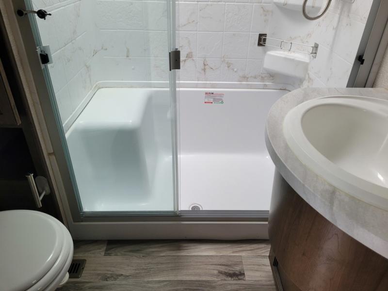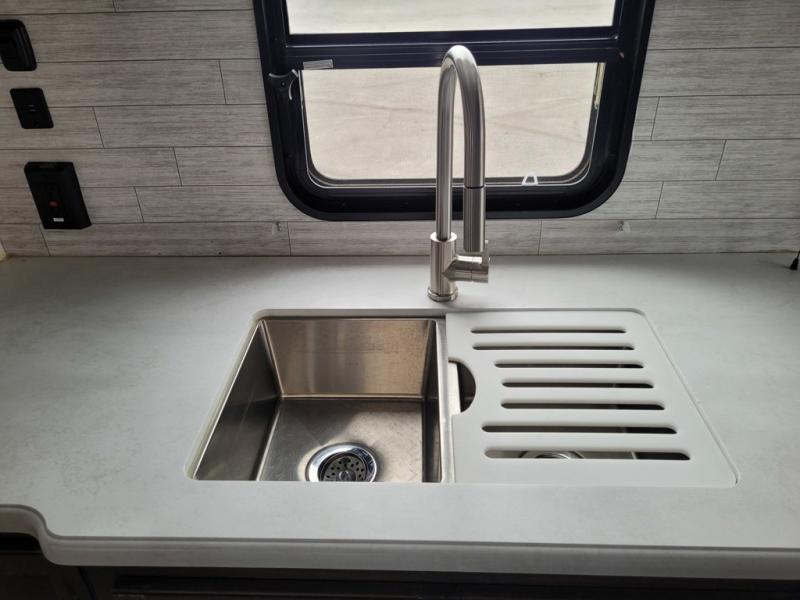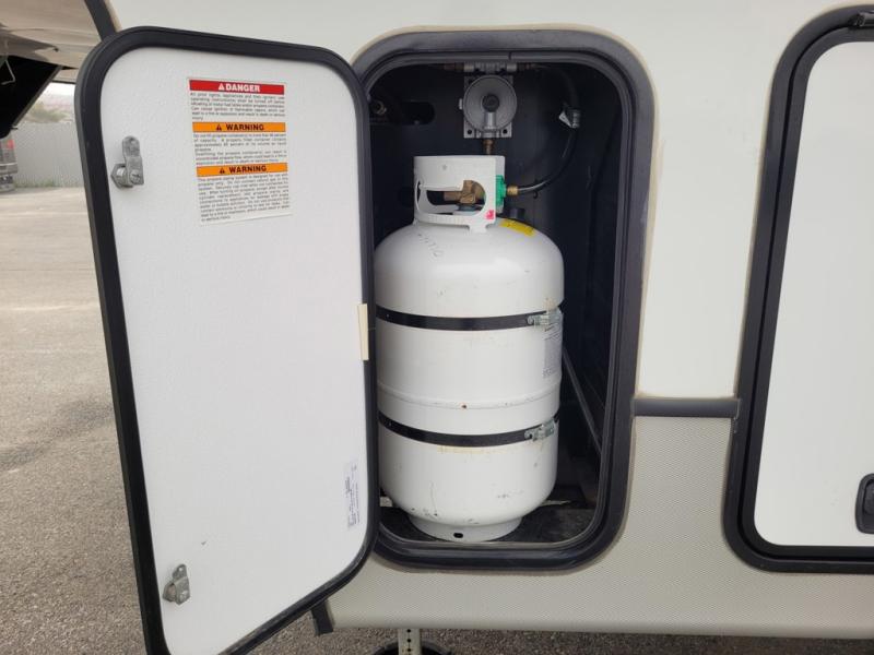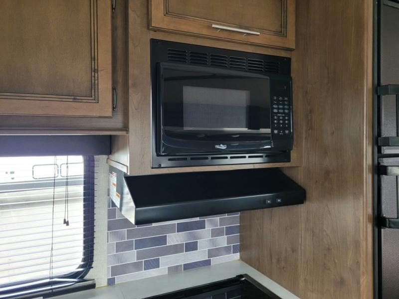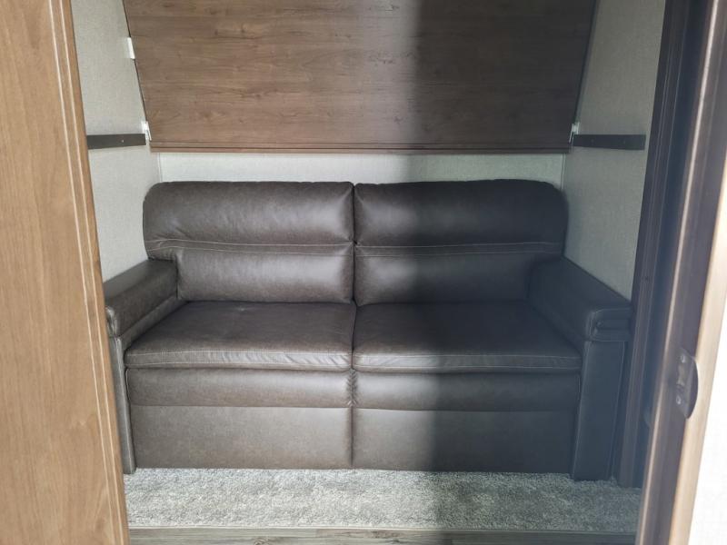 You'll have a new way to vacation once you get this Cougar Half-Ton fifth wheel in the driveway! Because this unit has two bedrooms, you'll be able to sleep separately and comfortably each night. The front private bedroom has a wardrobe slide so that you can store your garments, and the private bunkhouse has a slide out with a flip bunk above a sofa. Plus, there is also a desk top so that you can sit down and get some work done whenever you need.