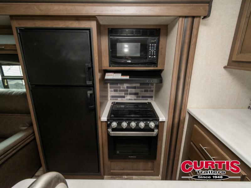 With opposing slides in the main living area, you'll have plenty of space to sit back and relax in this Cougar Half-Ton travel trailer! While you wait for dinner to be prepared on the 21" Furrion range, you can put your feet up on the 68" tri-fold sleeper sofa or theater seating while you watch something at the entertainment center. You can even head to the front master suite where you can grab a change of clothes from the wardrobe slide.