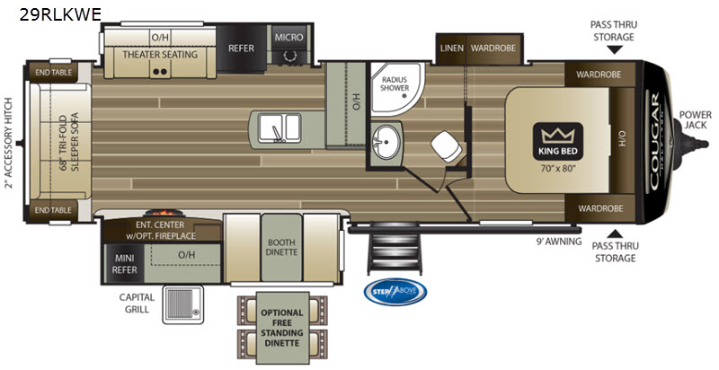 Keystone Cougar Half-Ton travel trailer 29RLKWE highlights: