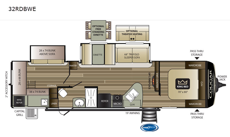 Keystone Cougar Half-Ton travel trailer 32RDBWE highlights: