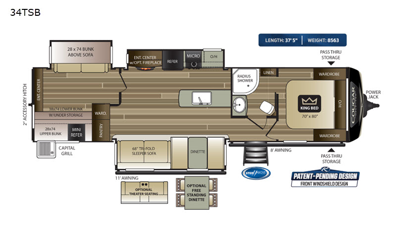 Keystone Cougar Half-Ton travel trailer 34TSB highlights:
