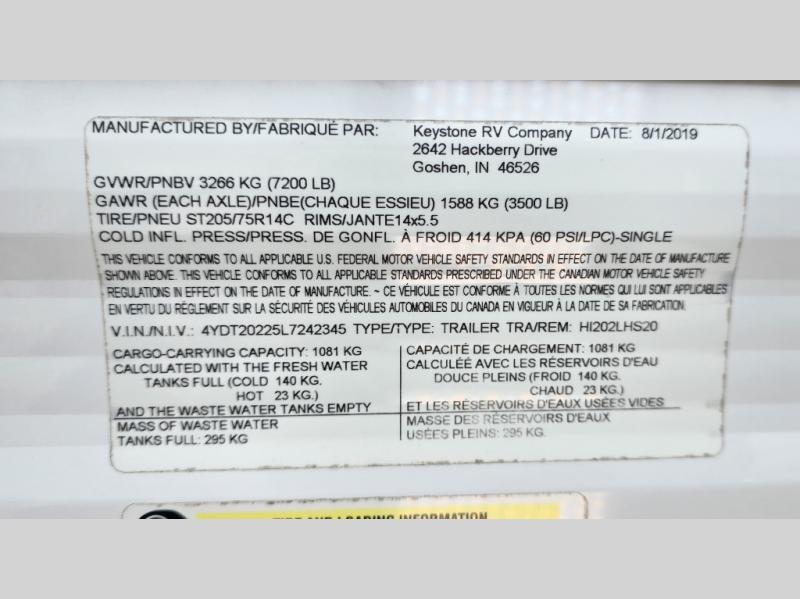 Used 2020 Keystone RV Hideout 202LHS Travel Trailer