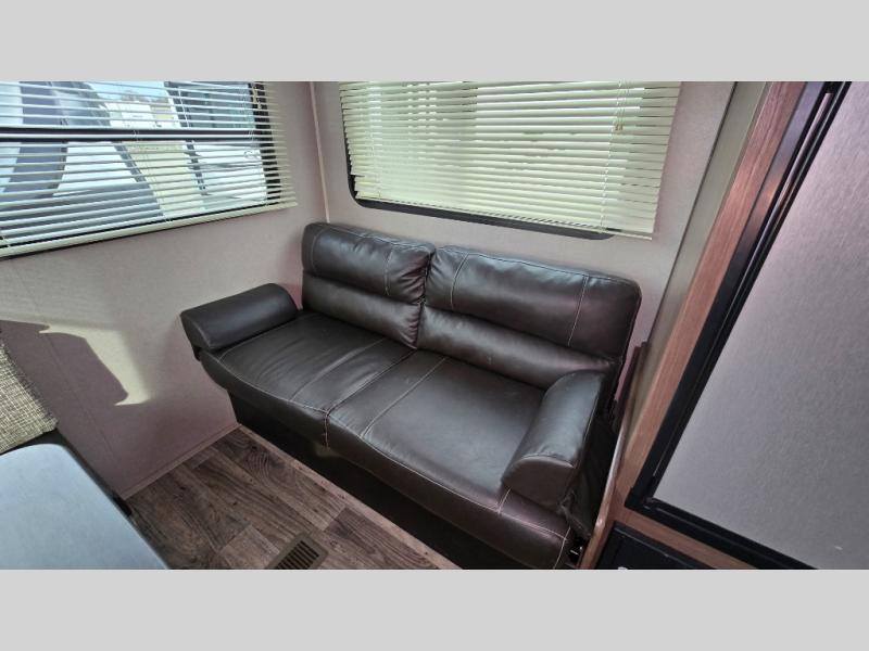 For any trip, whether near or far, you will want a Hideout fifth wheel, travel trailer, or toy hauler by Keystone RV. These models are lightweight which makes them easy to hook up and tow. Just load up your belongings and head out for a weekend away in your own Hideout retreat. A few key features inside of each model include: pleated shades in the living area, a high-rise faucet in the kitchen, and full-strutted storage under the master bed, and the exterior is just as indulgent with its powder-coated I-beam frame, exterior speakers, black radius window frames, Tru-fit™ five point slide-out construction, and the lighted adjustable power awning. Don't wait any longer to enjoy your own private hideout with the Keystone Hideout!