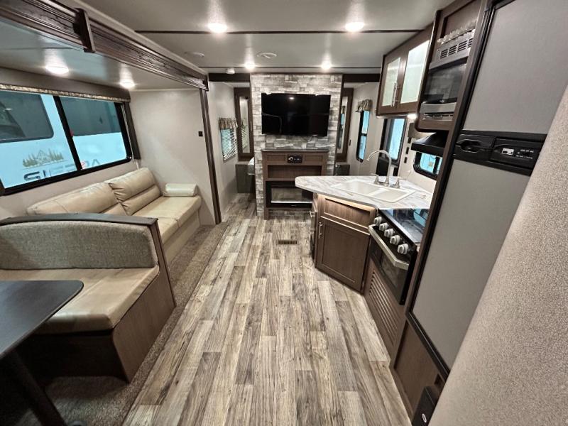 For any trip, whether near or far, you will want a Hideout fifth wheel, travel trailer, or toy hauler by Keystone RV. These models are lightweight which makes them easy to hook up and tow. Just load up your belongings and head out for a weekend away in your own Hideout retreat. A few key features inside of each model include: pleated shades in the living area, a high-rise faucet in the kitchen, and full-strutted storage under the master bed, and the exterior is just as indulgent with its powder-coated I-beam frame, exterior speakers, black radius window frames, Tru-fit™ five point slide-out construction, and the lighted adjustable power awning. Don't wait any longer to enjoy your own private hideout with the Keystone Hideout!