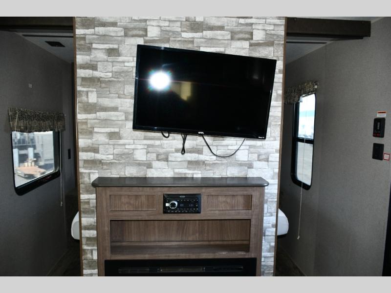 With a private front bedroom, rear double-size bunks, and multiple living areas, this trailer can comfortably sleep up to nine people.