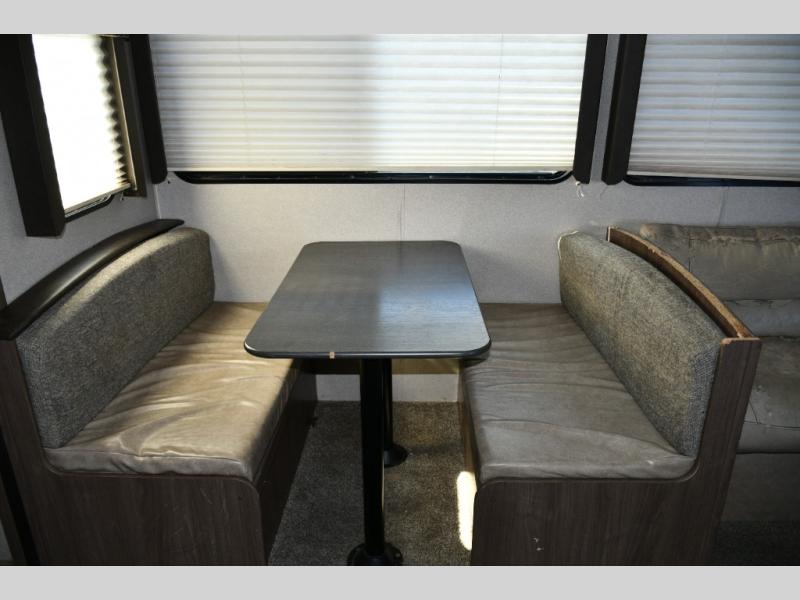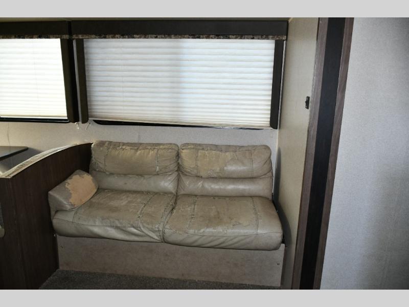 Large slide-out with sofa and booth dinette for expanded living space