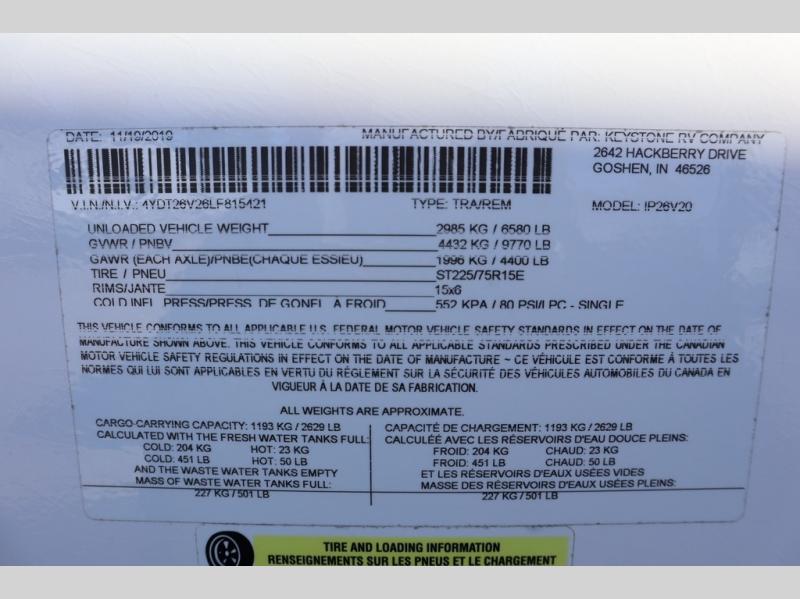 Used 2020 Keystone RV Impact 26V Travel Trailer