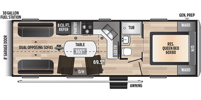 To ensure you and your family will enjoy any off-road trip you take, load up your toys, food and clothing and head out! From the master bedroom including a residential queen bed to get a good night's sleep, and the dual entry bathroom with an oversized shower to get cleaned up in after a muddy ride, to having your own kitchen amenities to make a warm meal, dining space when you aren't outside, and extra sleeping accommodations for the kids or your friends, the fun never ends! You will also find storage throughout, plus a 32" LED TV to watch your favorite movies!