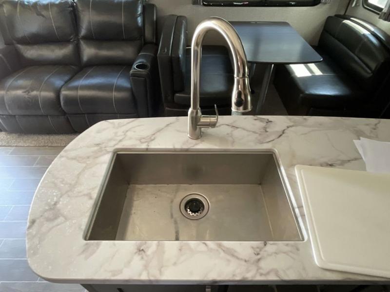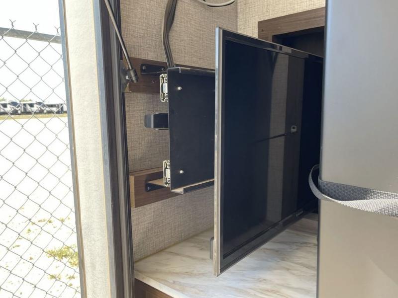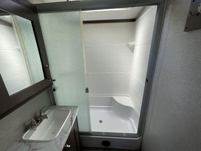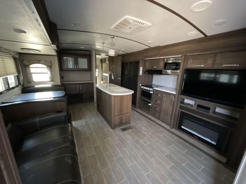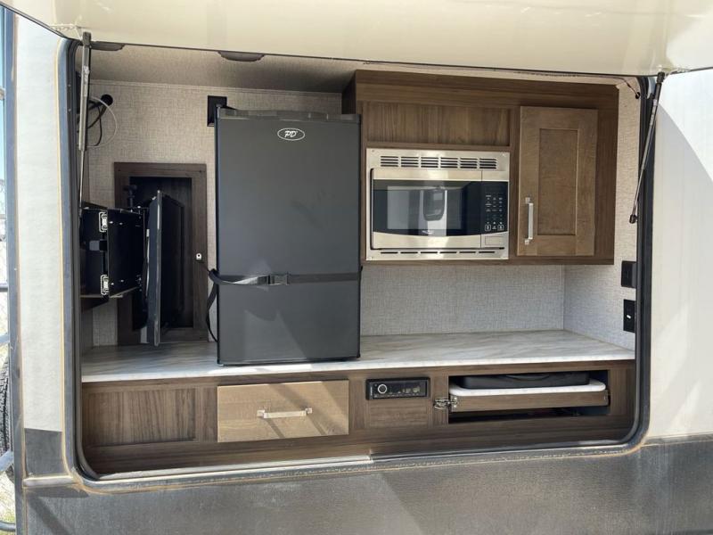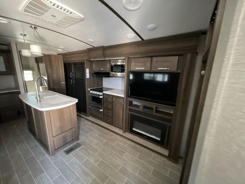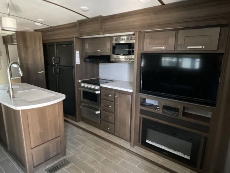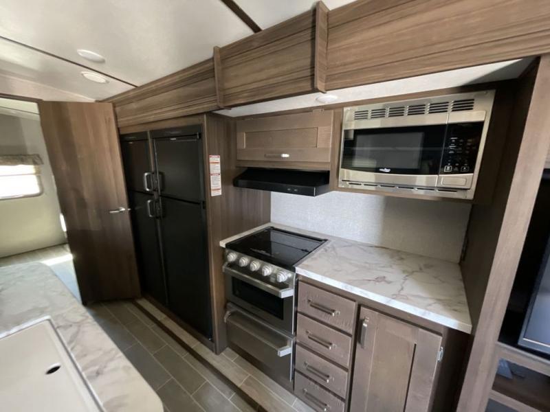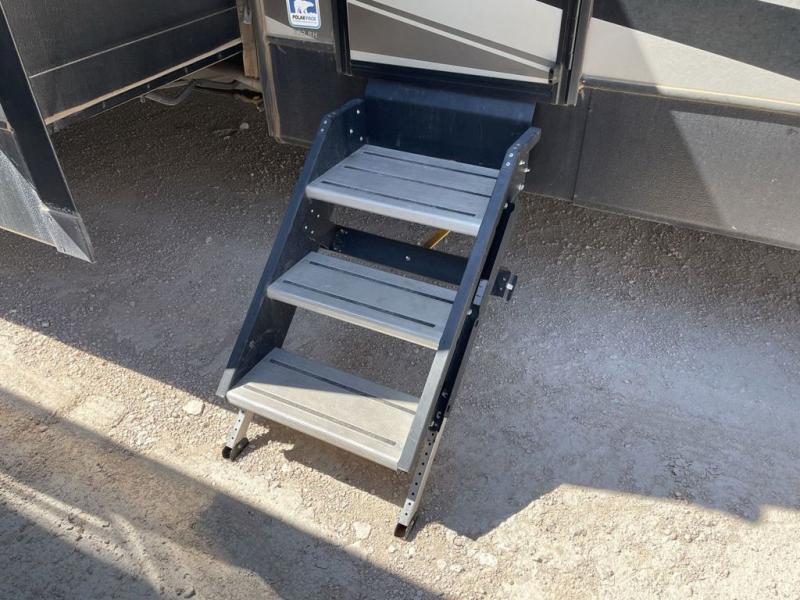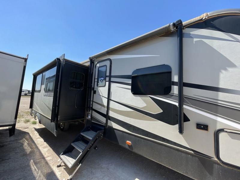 The Keystone Laredo fifth wheels and travel trailers are the very best at delivering upscale amenities, contemporary styling, and a variety of models! These units will allow you to travel with confidence because they come with Max Turn Technology which helps you maneuver easily into any campsite, and the Solid Step entry door remains level to the ground so that you can always enter safely. With a fully enclosed and heated underbelly and tanks, you will be able to adventure during any season without worry, and the oversized lighted and heated pass-through storage compartment will provide a safe place for all of your gear.