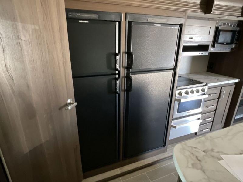 Don't pass up the amazing memories you'll make with this Laredo travel trailer! This unit gives you a rear private bunkhouse so that your kids can have their own place to play and sleep while you rest comfortably on the king-size bed in the front private bedroom. You will be stunned by the fabulous kitchen area which includes two refrigerators, a kitchen island, and a breakfast bar. Plus, the large opposing slides open up this space so that you can enjoy all of the time spent getting dinner ready for the family. And if you want even more space around you while you cook, you can head to the outdoor kitchen!