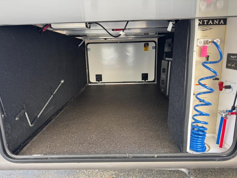 When packing for your next trip in a Keystone Montana luxury fifth wheel you will appreciate the enormous drop frame pass-through storage compartment, the full extension drawer guides, the MORyde "Step Above" entry steps with strut assist, and the LED motion sensor light at the inside steps. The Residential Living package adds more upgraded features such as the motion sensor LED light in the bedroom closet, the easy sweep vinyl flooring, the exclusive KeyTV satellite prep, and the in-floor straight line heat duct system. The Four Season Living package provides insulated in-floor water lines, two attic vents for cross-ventilation, insulated and heated holding tanks and dump valves, and more so you can travel any season you like. It's time to find the luxury fifth wheel you can enjoy for years to come, choose a Montana by Keystone today!