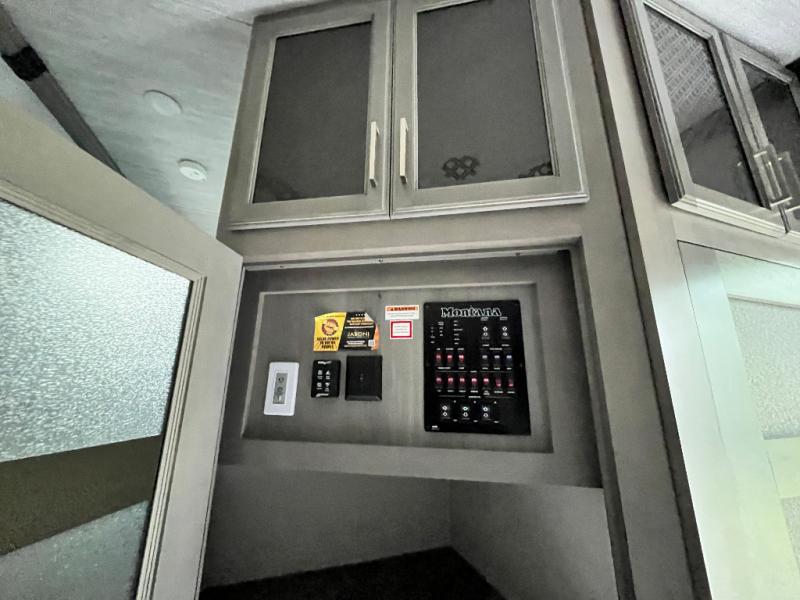 When packing for your next trip in a Keystone Montana luxury fifth wheel you will appreciate the enormous drop frame pass-through storage compartment, the full extension drawer guides, the MORyde "Step Above" entry steps with strut assist, and the LED motion sensor light at the inside steps. The Residential Living package adds more upgraded features such as the motion sensor LED light in the bedroom closet, the easy sweep vinyl flooring, the exclusive KeyTV satellite prep, and the in-floor straight line heat duct system. The Four Season Living package provides insulated in-floor water lines, two attic vents for cross-ventilation, insulated and heated holding tanks and dump valves, and more so you can travel any season you like. It's time to find the luxury fifth wheel you can enjoy for years to come, choose a Montana by Keystone today!