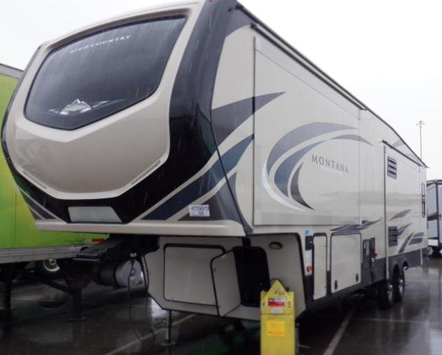 When heading out and setting up in a Keystone Montana High Country fifth wheel you will appreciate the Dexter E-Z Lube axles, Max Turn front cap and radius frame with Hitch Vision, and an enormous drop frame pass-through storage compartment to name a few features. Inside you will find luxury and comfort with the 78" tall main slide outs and flush mounted LED interior lights. The bath features a skylight over the shower, seamless countertops, and a vanity with three drawers for extra storage space!. The chef of the family is going to love the Montana High Country's kitchen with its Furrion 21" two in one stainless steel cooktop and oven, a 30" over-the-range microwave, solid surface countertops, and a high-rise faucet with an integrated pull-out sprayer, plus so much more!