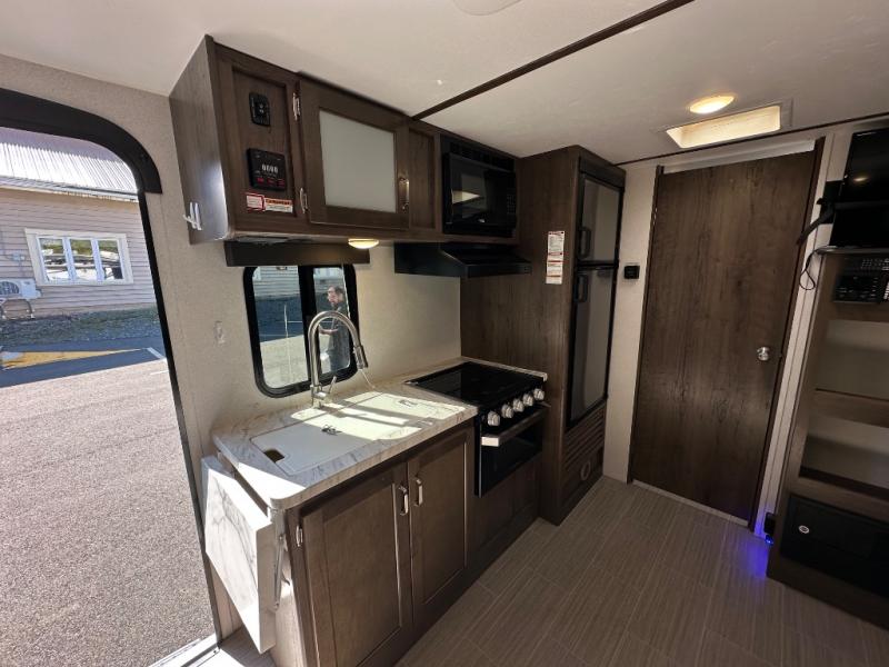 The Passport SL Series travel trailers by Keystone RV come in a compact design with travel-friendly lengths that are lightweight and easy to tow behind many smaller crossover SUVs. You will find several residential-style features such as durable Armstrong vinyl flooring, residential interior doors, and upgraded leather furniture. Plus, there is also a stainless steel sink with a pull-down faucet. The exterior shower is very useful as you get cleaned up before entering the RV, wash your pets, or even rinse a few dishes outside. Choose your favorite Passport SL Series today, and start going everywhere!