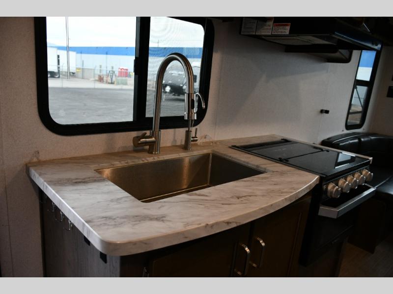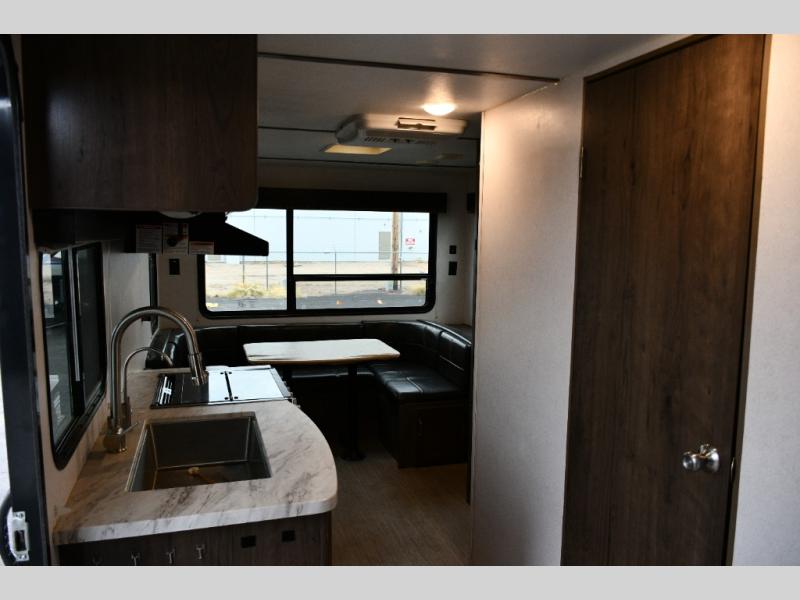 The Passport 216RD SL Series makes weekend trips or longer journeys easier with its compact footprint and thoughtful interior layout. The Murphy bed and sofa combination provides flexible living and sleeping spaces, while the rear dinette allows everyone to gather and enjoy the view. Exterior storage and residential-style finishes make living and traveling comfortable and convenient.