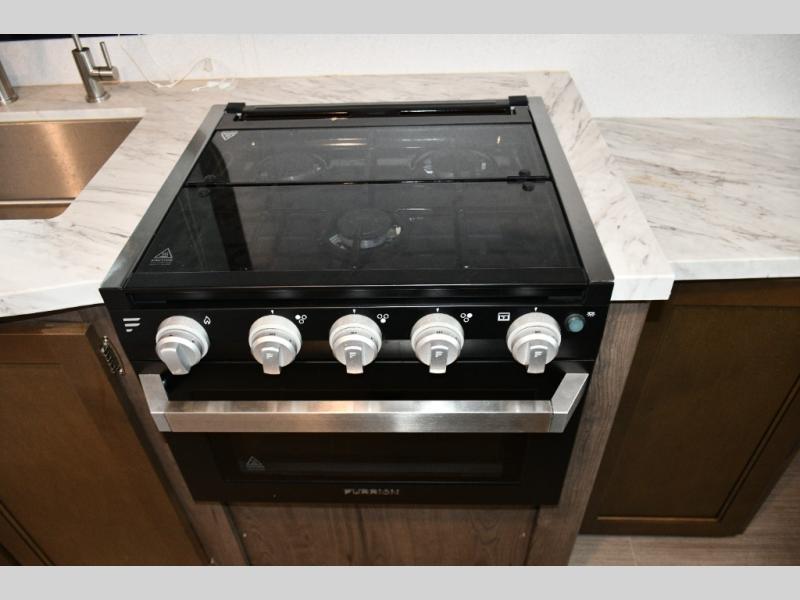 Residential-Style Features – Durable Armstrong vinyl flooring, leather furniture, stainless steel sink with pull-down faucet, and interior doors