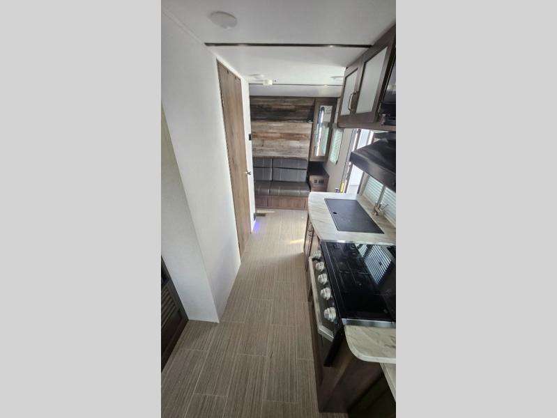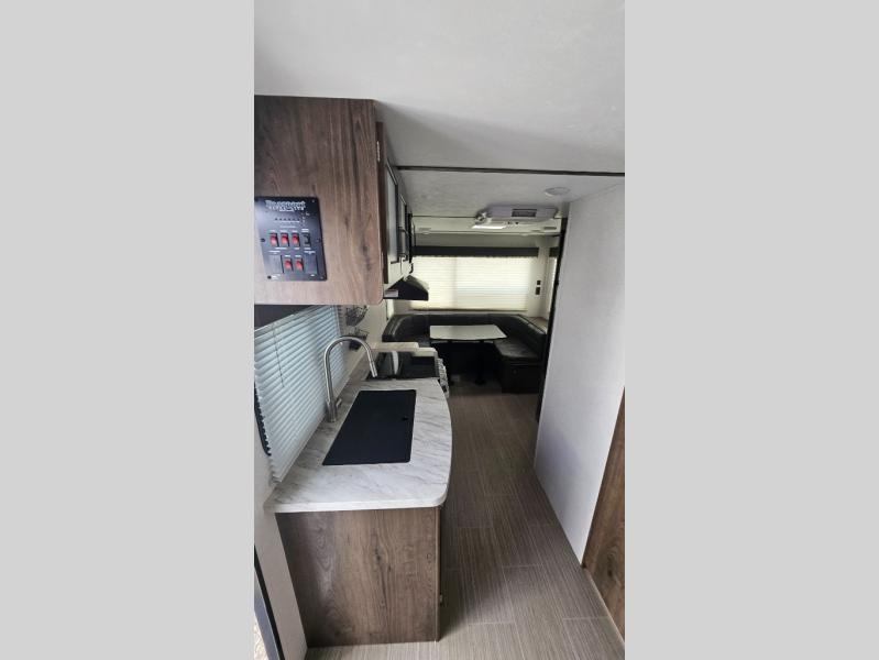 The Passport SL Series travel trailers by Keystone RV come in a compact design with travel-friendly lengths that are lightweight and easy to tow behind many smaller crossover SUVs. You will find several residential-style features such as durable Armstrong vinyl flooring, residential interior doors, and upgraded leather furniture. Plus, there is also a stainless steel sink with a pull-down faucet. The exterior shower is very useful as you get cleaned up before entering the RV, wash your pets, or even rinse a few dishes outside. Choose your favorite Passport SL Series today, and start going everywhere!