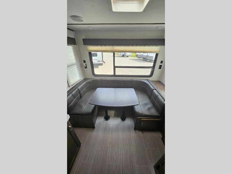 Have you been searching for a travel trailer that has a sofa and Murphy bed for yourself and a dining area when the weather isn't just right to eat outside? This Passport travel trailer allows you to enjoy the views out the rear window while sitting at the U-shaped dinette eating, reading a book, or playing a game with friends. You can watch the flat screen HDTV and make meals in the kitchen all while someone else gets cleaned up in the full bathroom. Once it's bedtime, the front Murphy bed will provide a comfortable night's rest after relaxing on the sofa. You will also appreciate the exterior pass-through storage for your larger camping items.