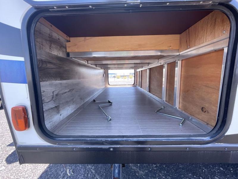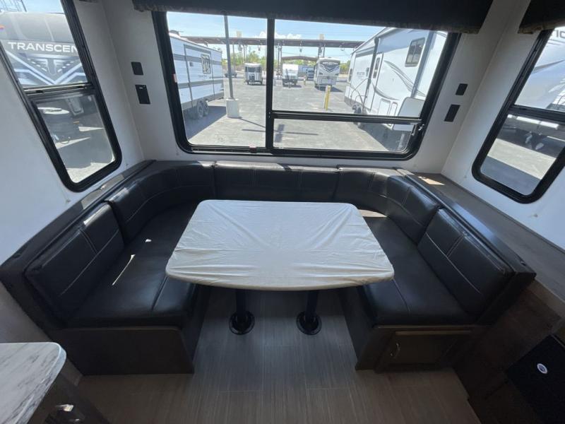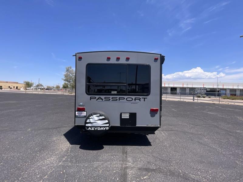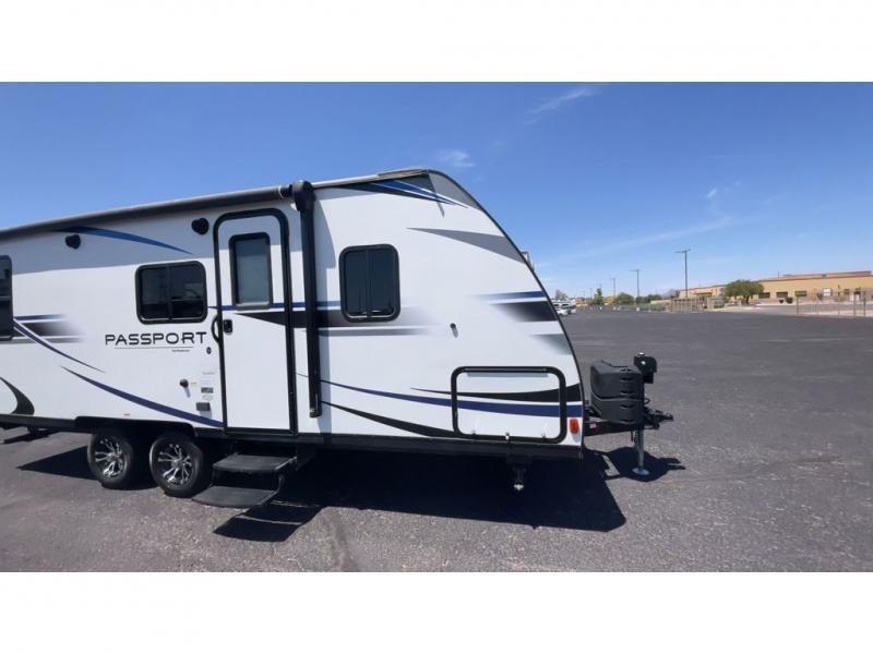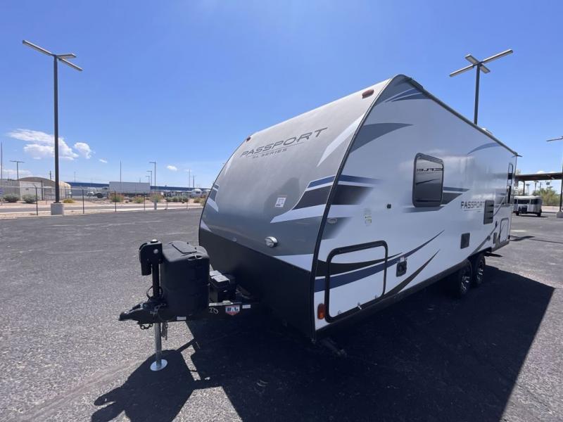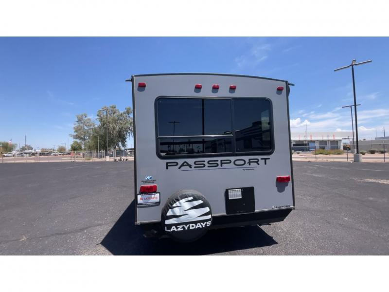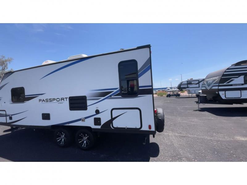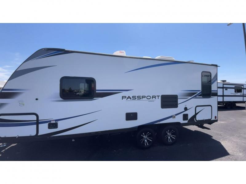 Have you been searching for a travel trailer that has a sofa and Murphy bed for yourself and a dining area when the weather isn't just right to eat outside? This Passport travel trailer allows you to enjoy the views out the rear window while sitting at the U-shaped dinette eating, reading a book, or playing a game with friends. You can watch the flat screen HDTV and make meals in the kitchen all while someone else gets cleaned up in the full bathroom. Once it's bedtime, the front Murphy bed will provide a comfortable night's rest after relaxing on the sofa. You will also appreciate the exterior pass-through storage for your larger camping items.