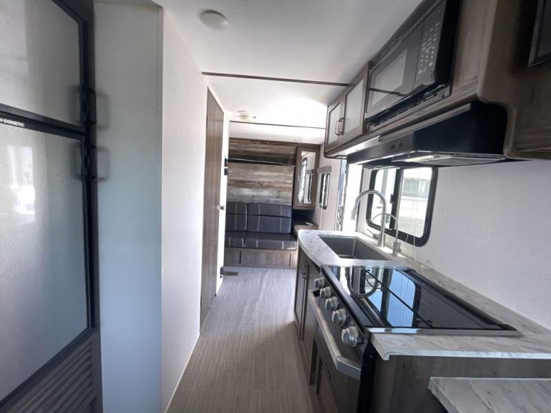 The Passport SL Series travel trailers by Keystone RV come in a compact design with travel-friendly lengths that are lightweight and easy to tow behind many smaller crossover SUVs. You will find several residential-style features such as durable Armstrong vinyl flooring, residential interior doors, and upgraded leather furniture. Plus, there is also a stainless steel sink with a pull-down faucet. The exterior shower is very useful as you get cleaned up before entering the RV, wash your pets, or even rinse a few dishes outside. Choose your favorite Passport SL Series today, and start going everywhere!