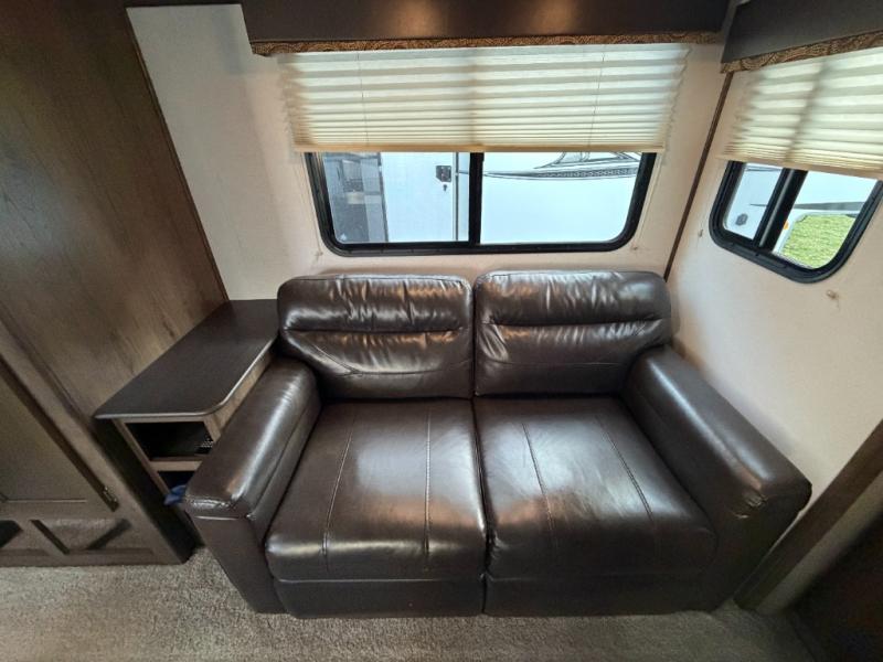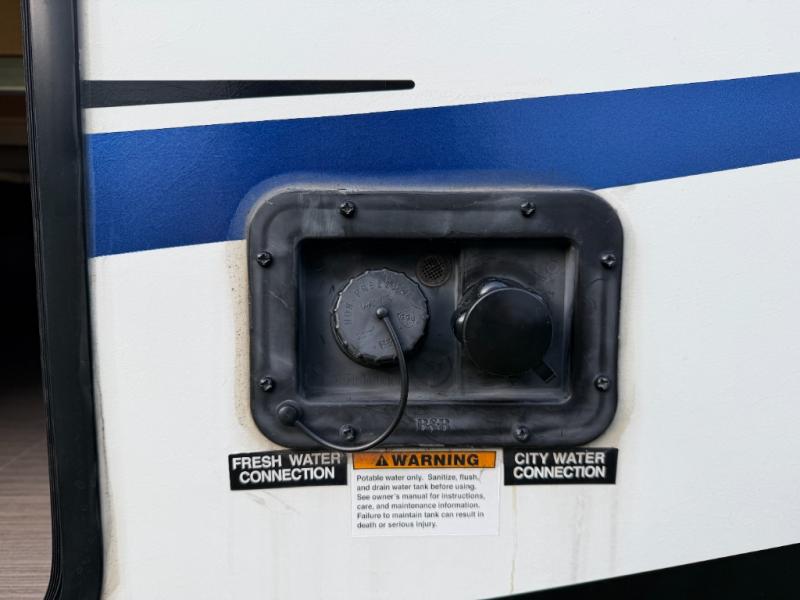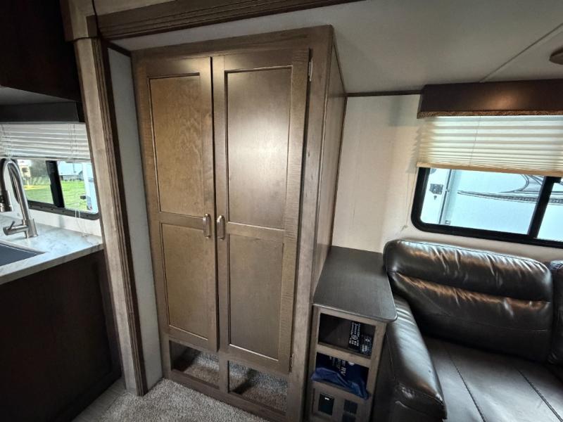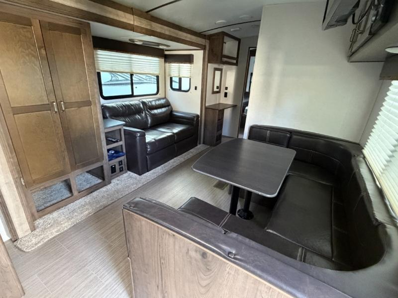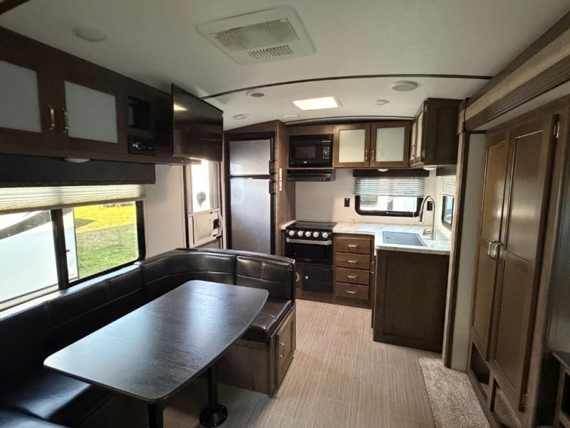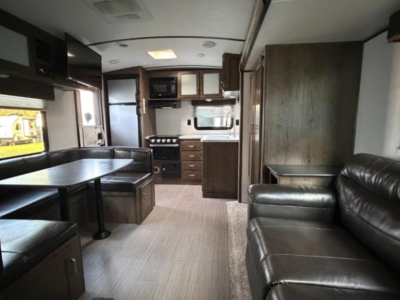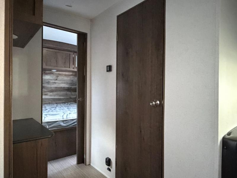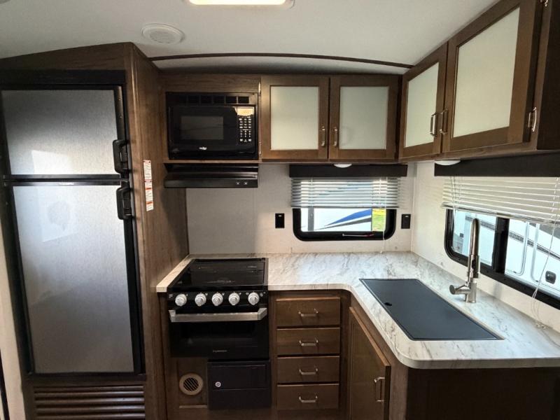 This interesting Passport travel trailer has many different great features that make it a unique choice for your travels! First of all, you will find two entry doors that will allow you to either enter directly into the front private bedroom or into the rear kitchen. The U-shaped dinette is located right next to the kitchen so that your family can sit down and chat with you while you cook, and there is also an LED flat screen HDTV on a swing arm so that you can position the TV however you like it to be. A work desk next to the single slide is helpful for a variety of uses, and the tri-fold sofa sleeper will allow you to offer sleeping space to any extra guests traveling with you and your spouse.