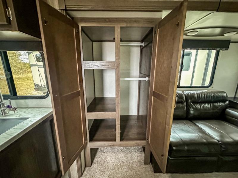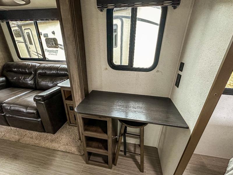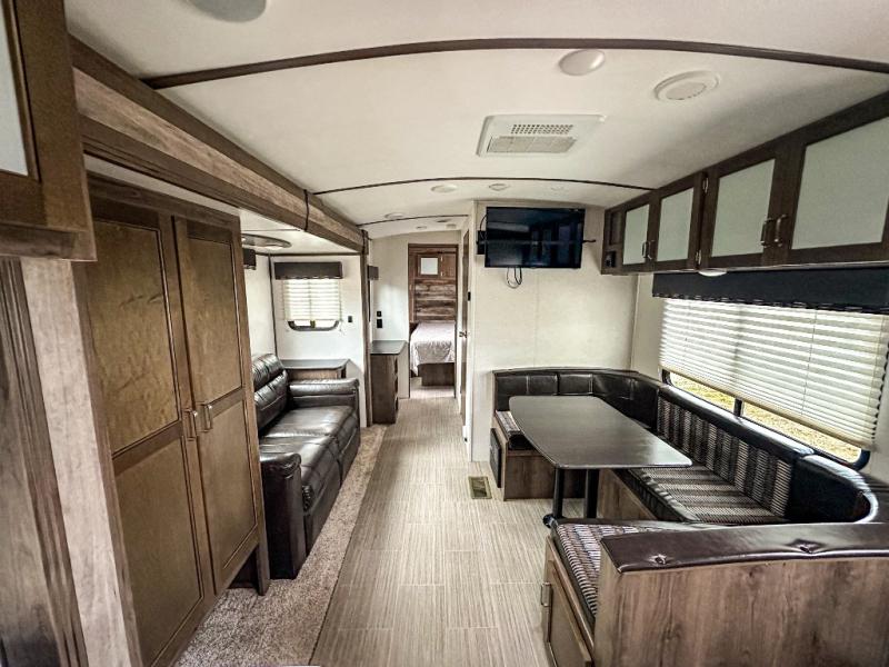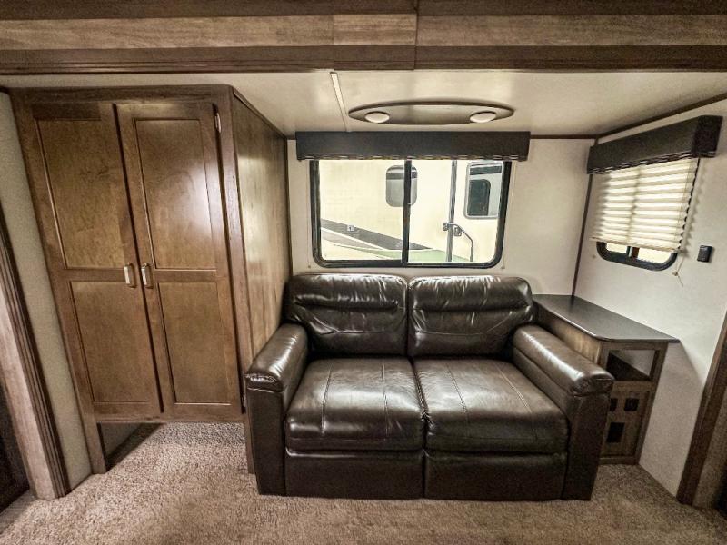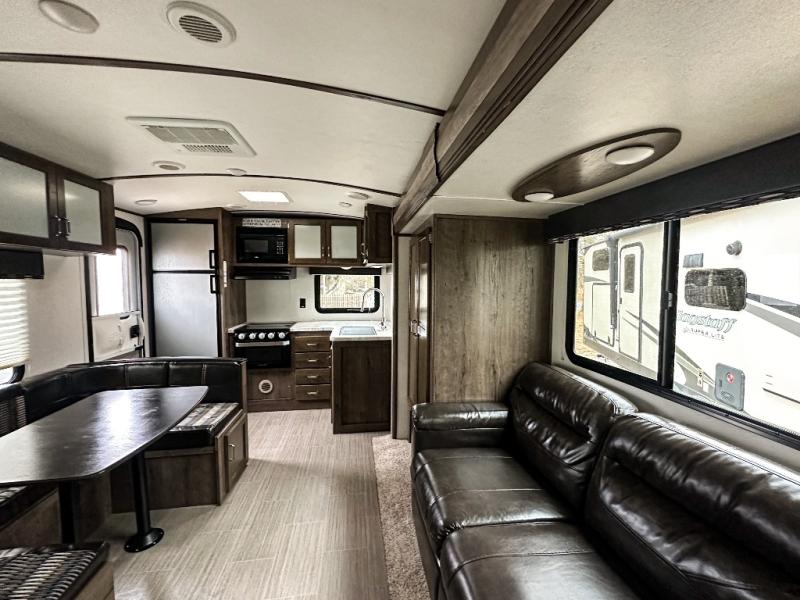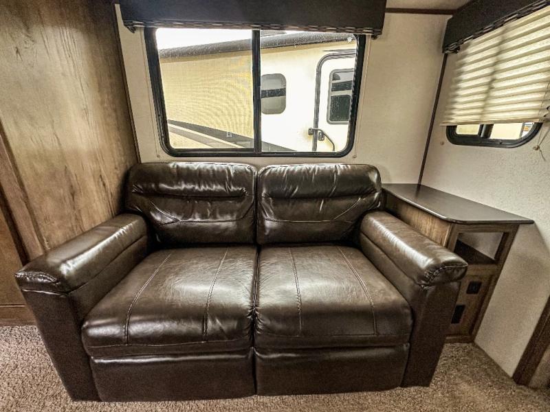 This interesting Passport travel trailer has many different great features that make it a unique choice for your travels! First of all, you will find two entry doors that will allow you to either enter directly into the front private bedroom or into the rear kitchen. The U-shaped dinette is located right next to the kitchen so that your family can sit down and chat with you while you cook, and there is also an LED flat screen HDTV on a swing arm so that you can position the TV however you like it to be. A work desk next to the single slide is helpful for a variety of uses, and the tri-fold sofa sleeper will allow you to offer sleeping space to any extra guests traveling with you and your spouse.