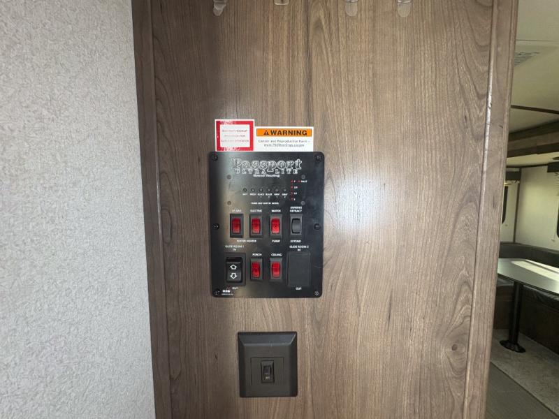 Have you been wondering how you can travel the country to see new places without leaving all your comforts of home behind? This Passport travel trailer will have you relaxing on a tri-fold sofa sleeper or on your own queen bed anywhere you decide to set up camp. From watching the flat screen HDTV in the rear living area and making meals in the full kitchen to eating at the U-shaped dinette slide, you will find something to love each time you hitch up. You might even choose to add the optional theater seats in place of the sofa.