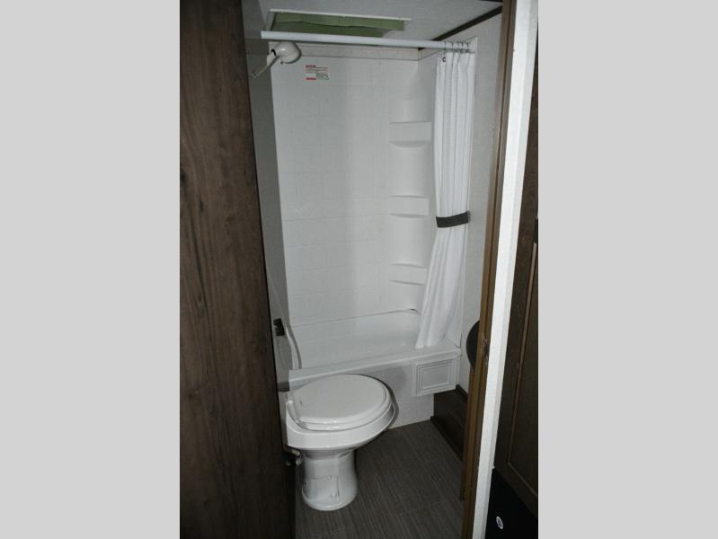 The Passport SL Series is known for its travel-friendly design, making it a great option for many crossover SUVs and smaller trucks. Inside, you’ll find residential-style touches that elevate every trip, including durable Armstrong vinyl flooring, upgraded leather furniture, and residential interior doors. The kitchen features a stainless steel sink with a pull-down faucet for easy cleanup, and the exterior shower is perfect for rinsing off after a day of hiking, biking, or beach time.