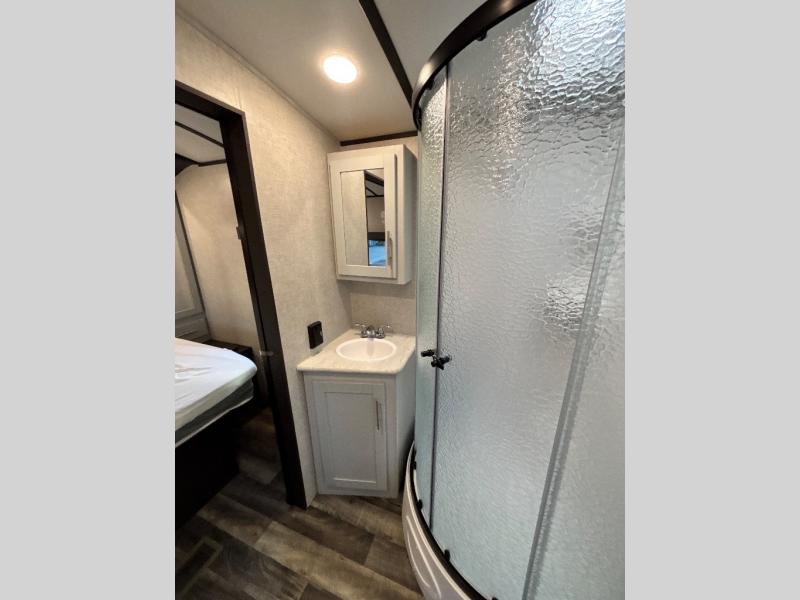With each Premier Ultra Lite travel trailer by Keystone you will appreciate the detail to construction including the aggressive front profile for increased towability, the aluminum-frame side, front and rear walls and slide outs, the walkable roof, and the Darco moisture barrier plus the enclosed and heated underbelly to be able to travel during any season. Inside, you'll be pleased with the hand-painted solid wood cabinet doors, the vaulted ceiling, the USB charging ports in the bedroom, and the porcelain foot flush toilet. Don't wait to get away in style, choose a Premier today!