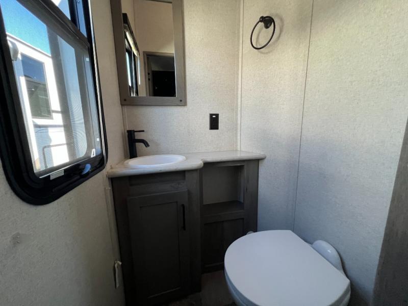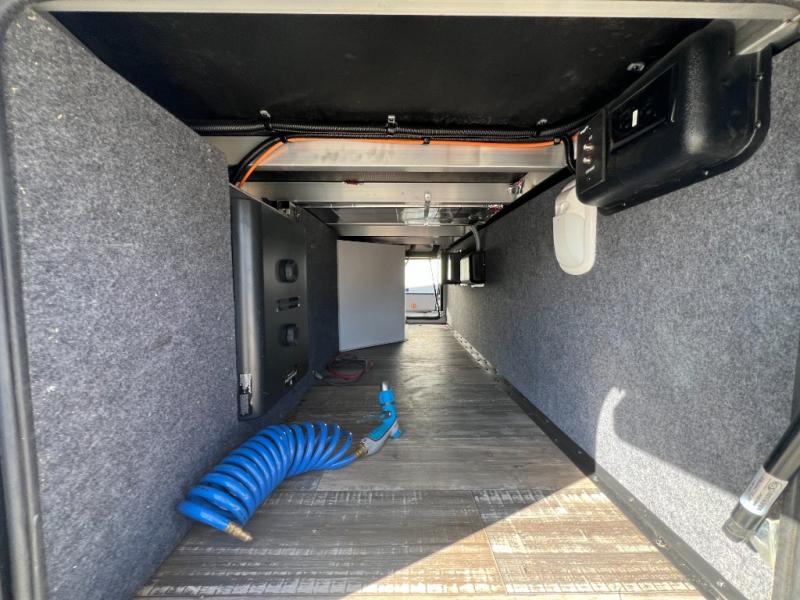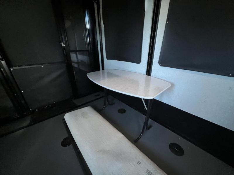 For a spectacular getaway each and every time you hit the trails, you need this Raptor toy hauler! The 11' separate garage with its electric bunk, dual opposing sofas, half bathroom, and second entry door will allow your guests to have their own retreat each night. You will find the queen-size bed in the front master suite to be your favorite place to relax for the evening. Even your child will have a place to call their own with the loft. For a midnight snack or a late-night movie, you can gather on the four-seat recliner or flip-up bar stools at the kitchen island and switch on the 50" LED TV. You will find a TV in the garage and the bedroom as well.