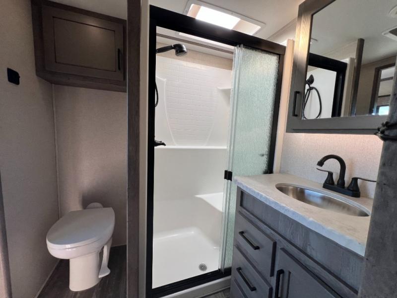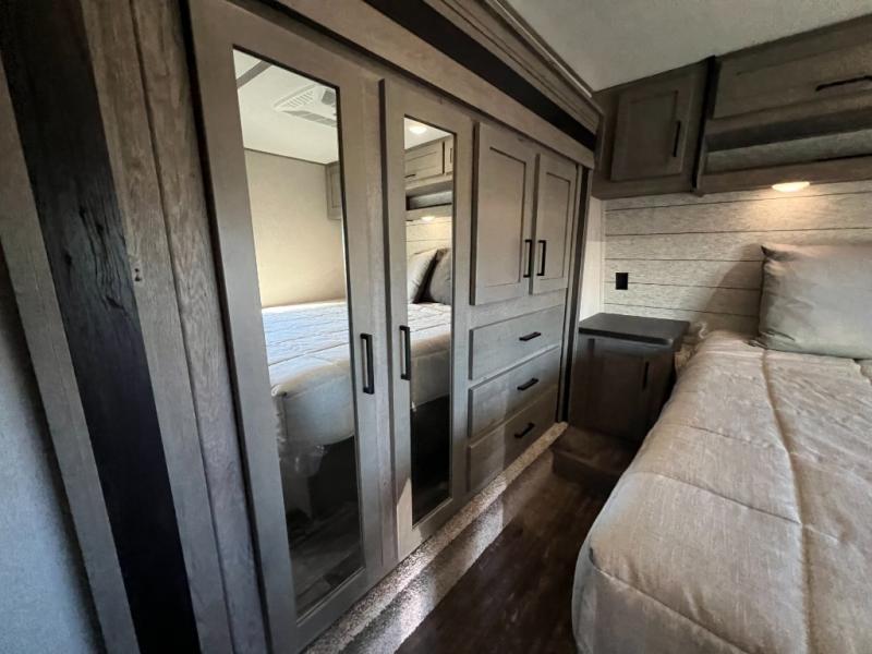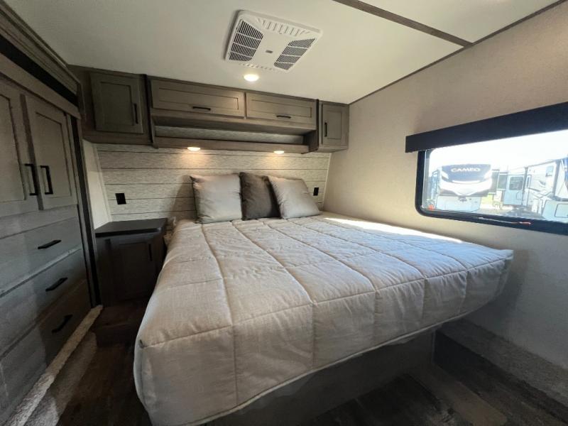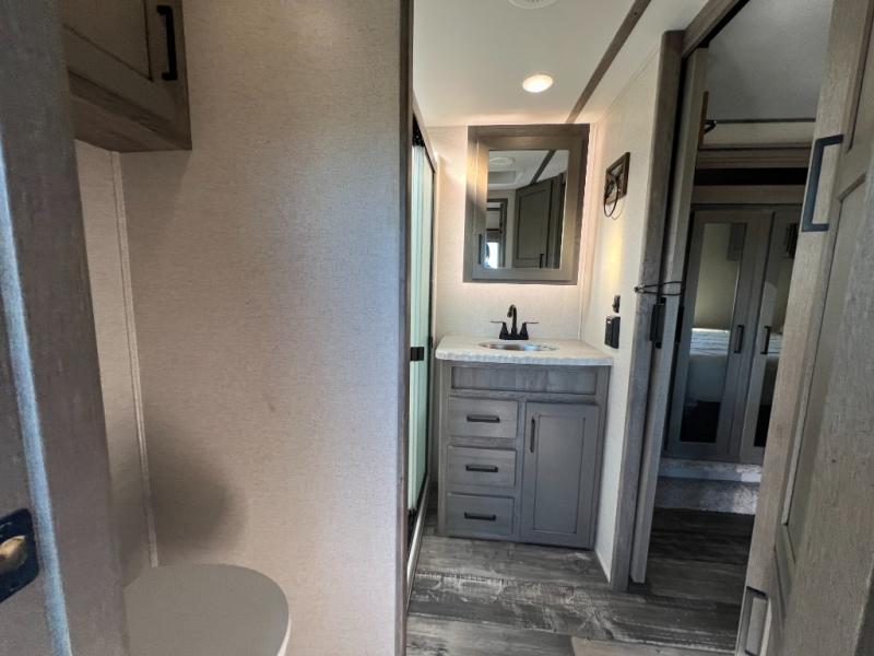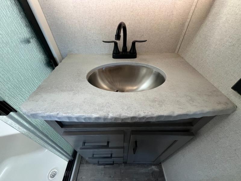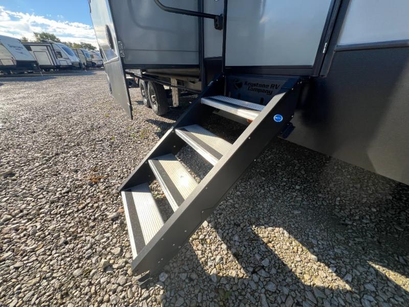 Each Raptor toy hauler fifth wheel by Keystone is built with the 6-point hydraulic auto-leveling, an on-board fuel station, the Ram air ventilation system in the garage, Equa-Flex Trailair suspension, frame-welded tie downs for your toys, and a heated and enclosed underbelly allowing you to travel 365 days if you like. Inside you will experience comfort, convenience and style with reclining furniture with heat, light and massage, USB ports in the sofa slide out box, wood crown molding, plus much more! Why limit yourself, choose the Raptor that fits your adventurous side and start your engines!