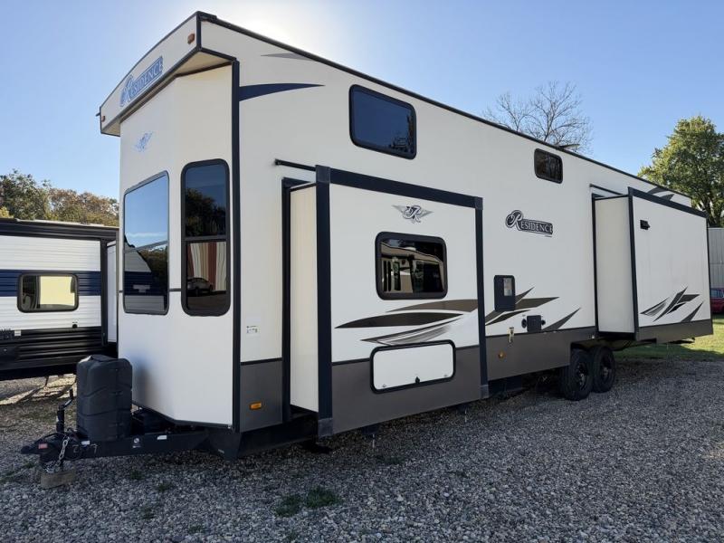 With any Residence destination trailer by Keystone RV, you will receive exclusive innovations such as the color-coded wiring for easy troubleshooting, the in-floor heating ducts for the airflow to distribute evenly, the Tru-fit slide construction, and the 4G LTE and Wi-Fi prep. You will appreciate the spacious living areas and bathrooms, and abundant residential features throughout. Some key features include a large 18 cu. ft. stainless steel refrigerator with double doors and freezer drawers, a king bed master suite in most models, a water purification system for fresh water wherever you camp, and 8' ceiling height for extra roominess. Take an adventure of a lifetime while making yourself at home, choose your favorite Residence today!