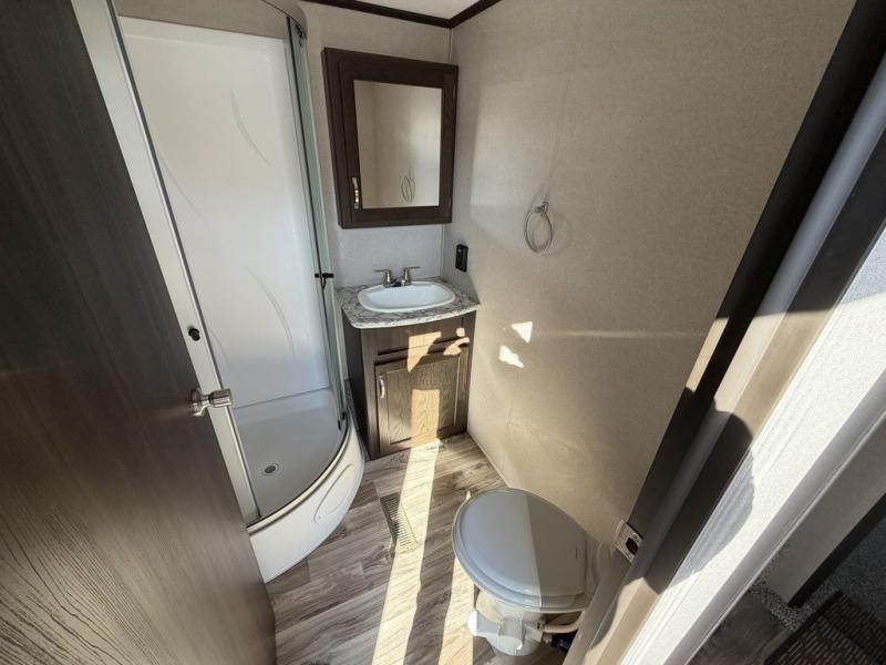 Make yourself at home by the lake, in the woods, or near the mountains in exceptional comfort each time you want to get away. With the extra sleeping space that comes from the sofa sleeper, the double size loft above the bathroom, and the king-size bed slide, you will be able to invite friends and family to join you on your excursions. You can feed everyone warm meals using all the appliances in the spacious kitchen, and the large pantry allows you to store plenty of paper goods and snacks. The free-standing table with four chairs will deliver many nights of fun as you gather together for dessert and a game of cards, and with one of the two entry doors leading directly into the private bedroom, you will be able to slip in and out for those early morning hikes or fishing trips.