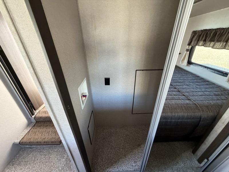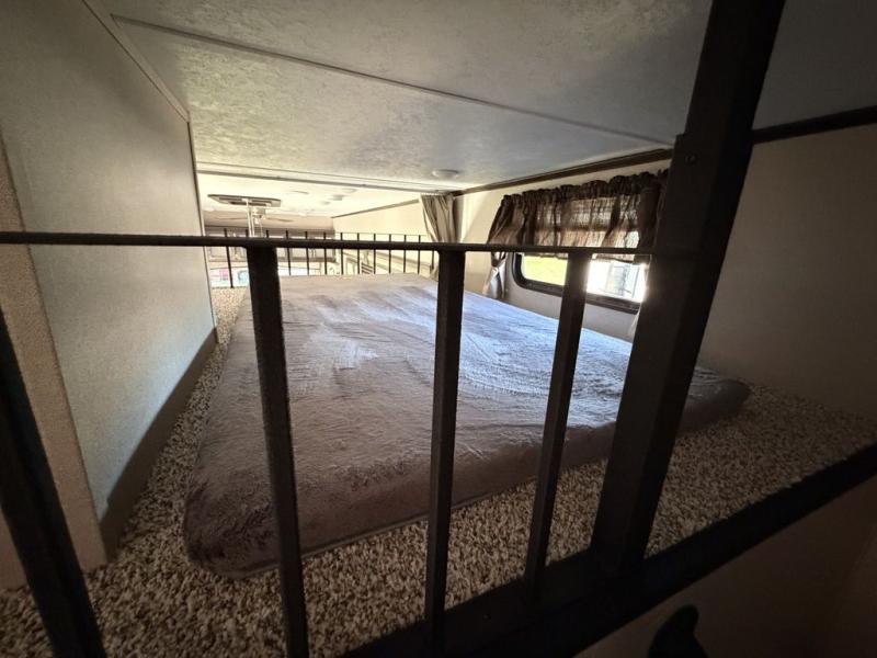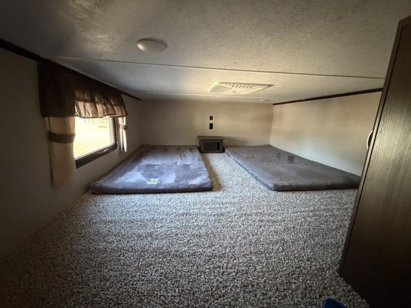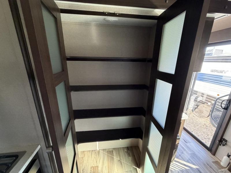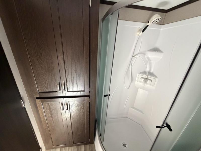 Make yourself at home by the lake, in the woods, or near the mountains in exceptional comfort each time you want to get away. With the extra sleeping space that comes from the sofa sleeper, the double size loft above the bathroom, and the king-size bed slide, you will be able to invite friends and family to join you on your excursions. You can feed everyone warm meals using all the appliances in the spacious kitchen, and the large pantry allows you to store plenty of paper goods and snacks. The free-standing table with four chairs will deliver many nights of fun as you gather together for dessert and a game of cards, and with one of the two entry doors leading directly into the private bedroom, you will be able to slip in and out for those early morning hikes or fishing trips.