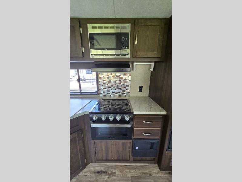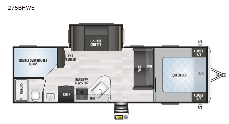 Get away in comfort, convenience, and class with this Springdale travel trailer! You'll feel right at home as you sit back on the sofa or U-shaped dinette and chat with the chef who is using the three-burner range and Furrion oven to prepare a delicious meal, and you'll even have an entertainment center right in front of the double-size bunks. Since the dinette rests upon a single slide, you'll be able to move about freely inside, and the best feeling of all will be ending the night on your own queen-size bed in the front private bedroom.