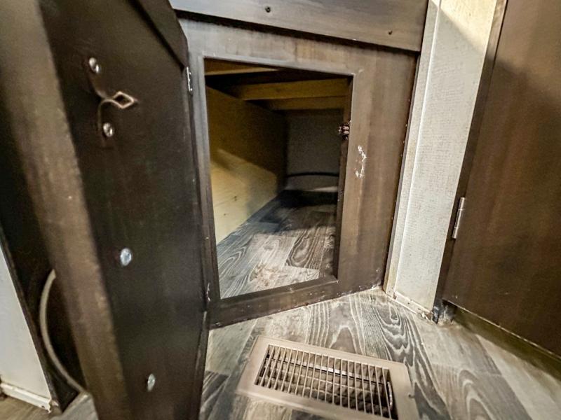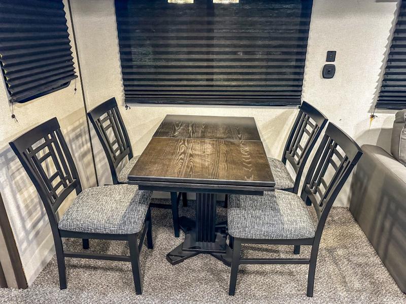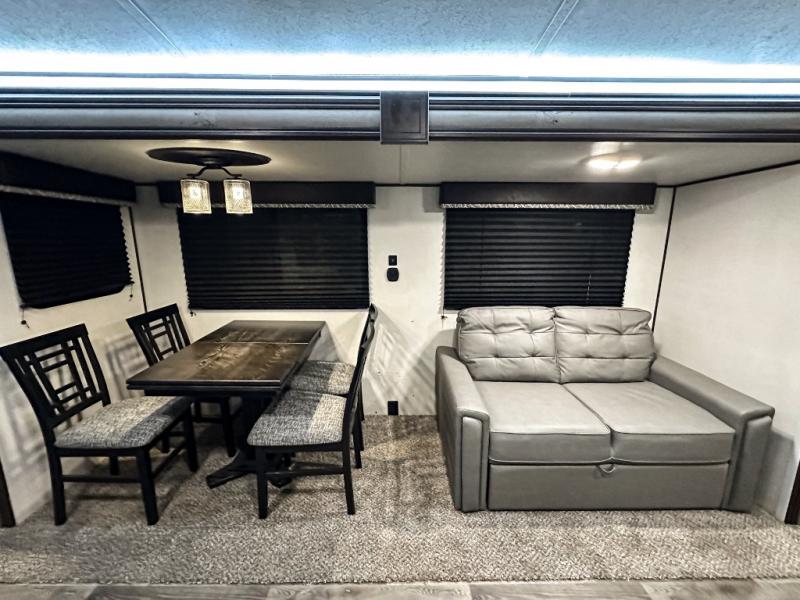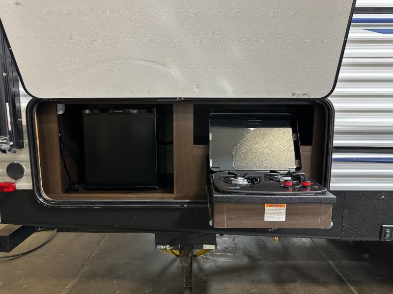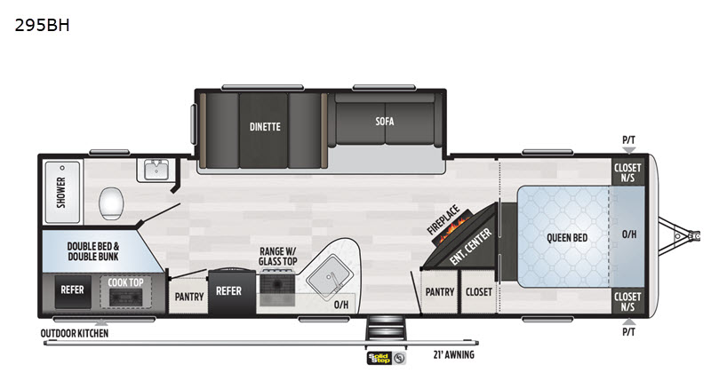 It will be so easy to host parties with this Springdale travel trailer because the outdoor kitchen and 21' awning will provide an exceptional space to enjoy a summer barbecue! Plus, this trailer is even better on the inside! The entertainment center and fireplace will draw you and your friends in to sit back on the sofa and booth dinette which are both situated on the large slide. This slide makes it so that you can still have interior walking space even when gathered together, and the two full pantries keep the snacks ready and available so that you can stock up the party bowls when they're running low. You can even turn those party guests into overnight guests by offering them a night of rest on the double-size bunks.