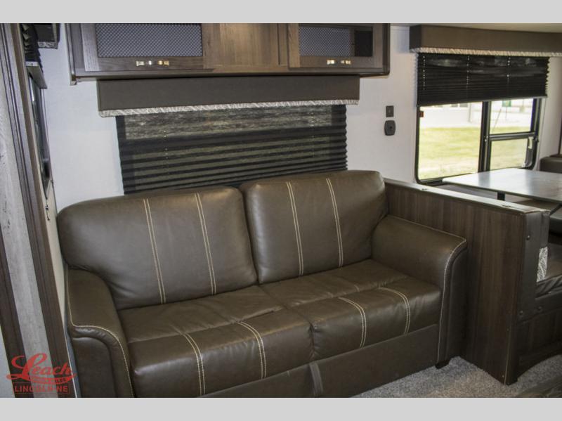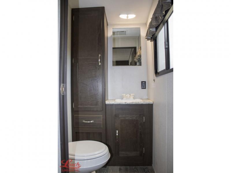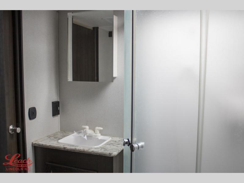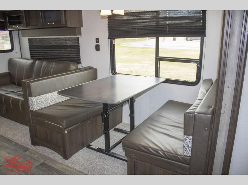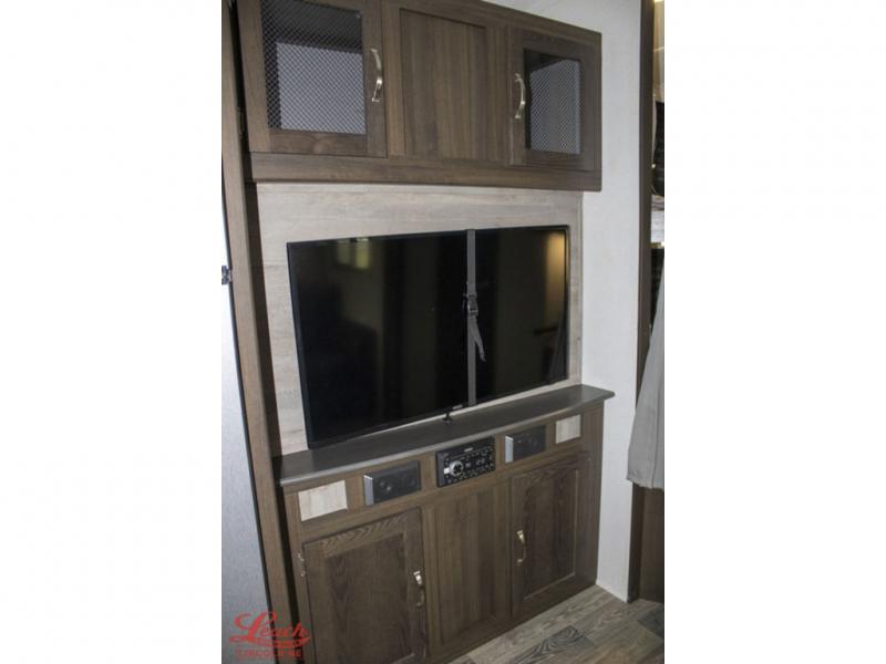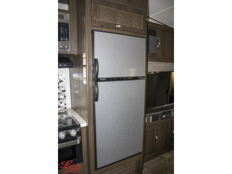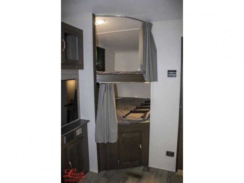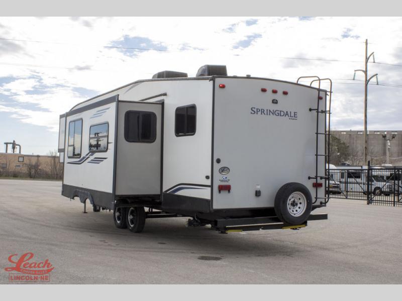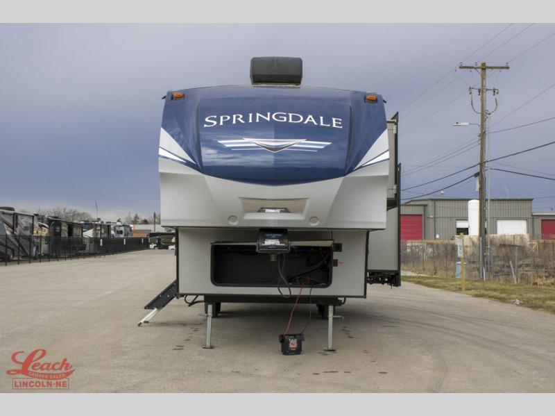 You will just love this Keystone Springdale fifth wheel! With the two slides, there is plenty of storage space to keep your travel items and enough room to freely move around the unit! You will love cooking in the kitchen, relaxing on the sofa in front of the entertainment center, or eating a meal at the booth dinette which can also be transformed into an extra sleeping space. The double-size bunks are sure to be a crowd pleaser with your kiddos, and they will also love having their own half bath located right next to the bunks. You are sure to love having your own front private master suite that has a queen bed with closets and nightstands on either side, as well as a wardrobe slide to keep your clothes neat and tidy. Plus, you have your own entrance into the dual-entry bath. Whatever you choose to do, your trip is sure to be relaxing, fun, and amazing!