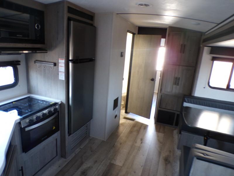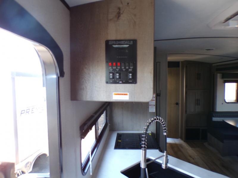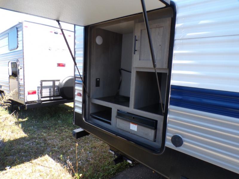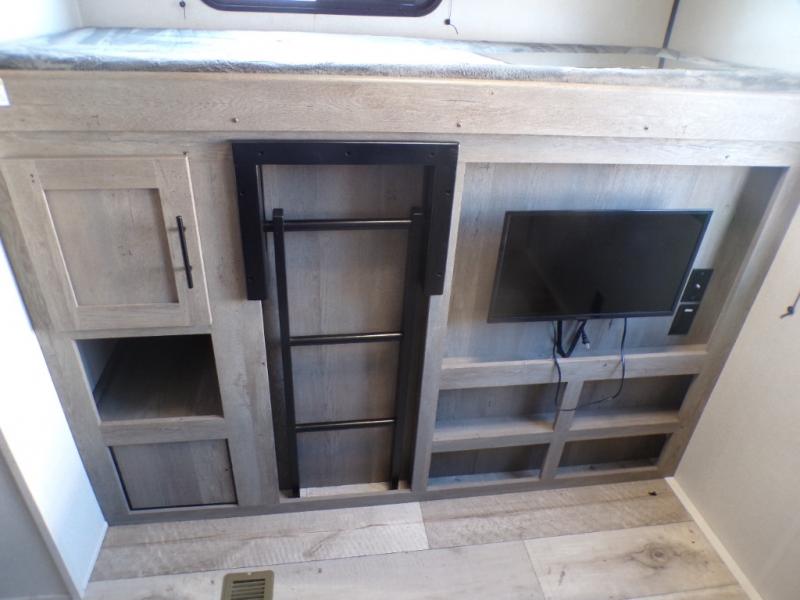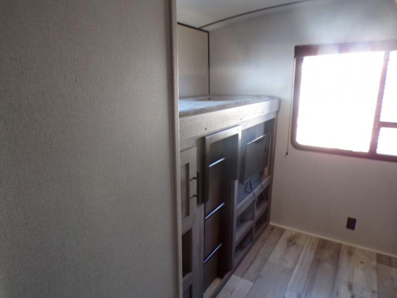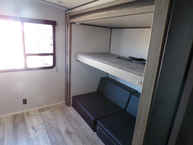 Lots of space, a bunkhouse for the kids, an outdoor kitchen for the chef in the family, two entry doors, and so much more makes this Keystone Springdale travel trailer perfect for a larger family to enjoy. The perfect feature for those who enjoy cooking and dining outside is an outdoor kitchen. The rearmost entrance makes accessing the bath easy from the outside, and the private bunkhouse features a flip-up bunk above a Fun Lounger, as well as another bunk above an entertainment center on the opposite side. There is plenty of overhead storage for all of your dishes and things. In the private front bedroom, you can enjoy a bit of seclusion from the rest of the unit and get a great night's sleep.
