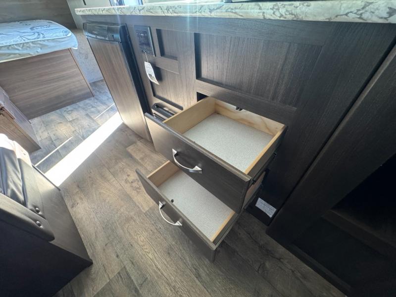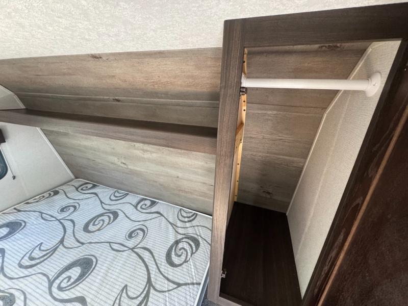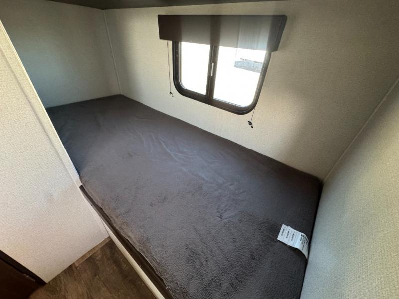 For a lightweight travel trailer that can easily accommodate your family you will want this Springdale Mini 1800BH! Your kids will enjoy their own space with the rear set of 32" x 75" bunk beds. Mom and dad can get a good night's rest on the front queen bed and if needed the booth dinette can easily sleep a person or two small children. In the rear left corner of this model is the rear corner bathroom where you can freshen up after a long hike. You will not be lacking in storage with all of the overhead cabinets plus the exterior pass through storage big enough to hold your outdoor gear!