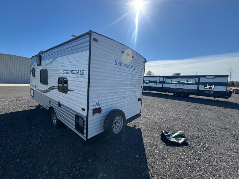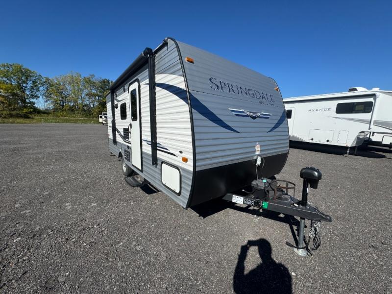 Get ready for any camping trip whether near or far! You will want an easy to tow, lightweight Keystone Springdale Mini travel trailer or toy hauler. These models have tinted safety glass windows, a mega exterior pass through storage area, E-coated corrosion-resistant wheels for a smoother ride. Inside you will enjoy plenty of features such as the cable TV hookup with a booster, the sleek black Furrion microwave, plus there is LED lighting so that you can see clearly whether day or night. There is also a CD/Bluetooth radio and a reversible bedspread, plus so much more! So don't waste anymore time, come choose today the Keystone Springdale Mini travel trailer or toy hauler that best suits you!