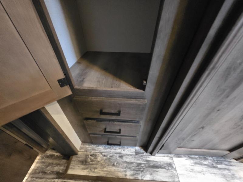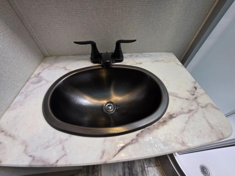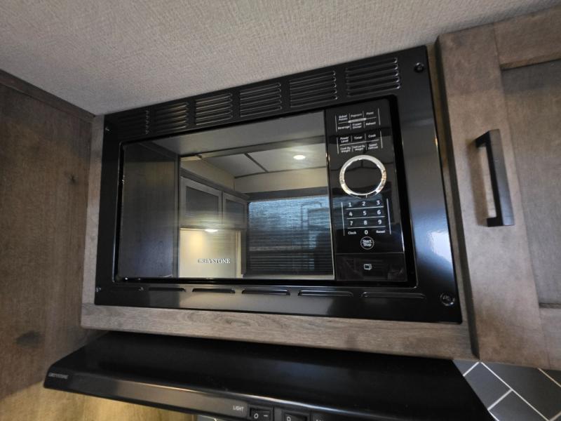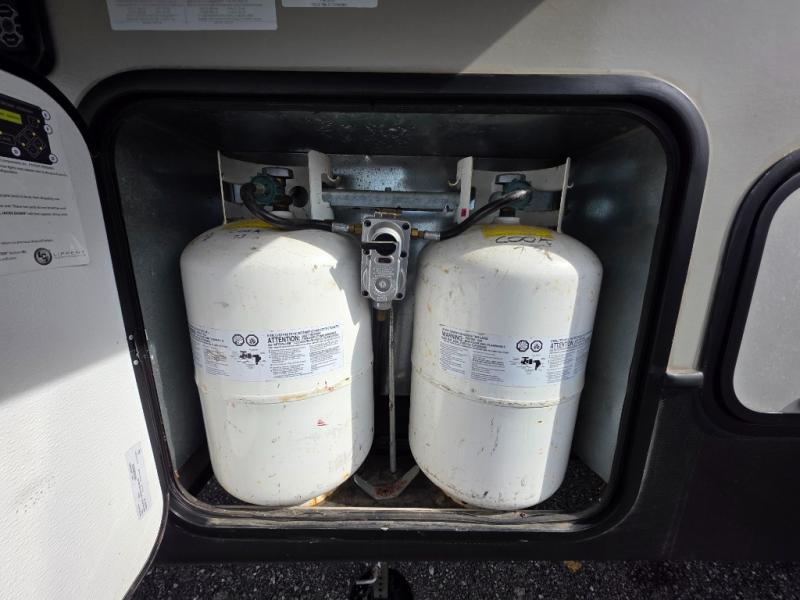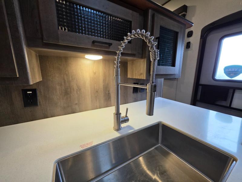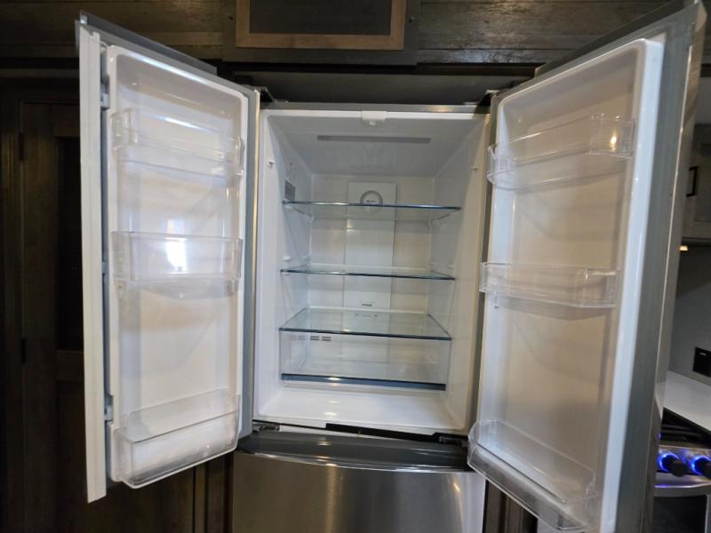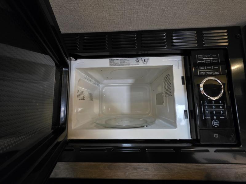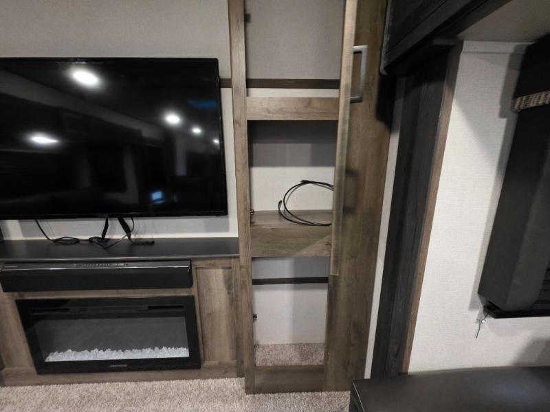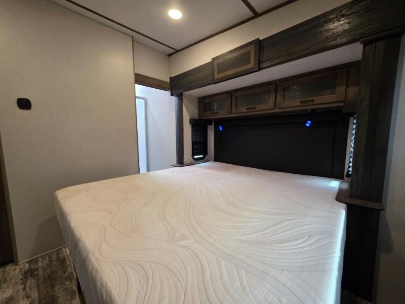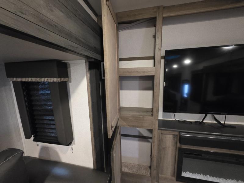Your whole gang is going to love camping in this fifth wheel! The front living area is perfect for everyone to relax and socialize together between the two tri-fold sofas that can transform into queen-sized beds and the full reclining theater seating with cupholders directly across from the 50" TV with a fireplace below it. After you have whipped up your best meal with the three burner range, you can head to the dinette with three chairs on one side and a booth on the other side, and your clean up will be even easier with the XL stainless steel sink and faucet. The dual entry bath makes it easy for everyone to access especially the lucky couple who gets to sleep in the rear private bedroom!