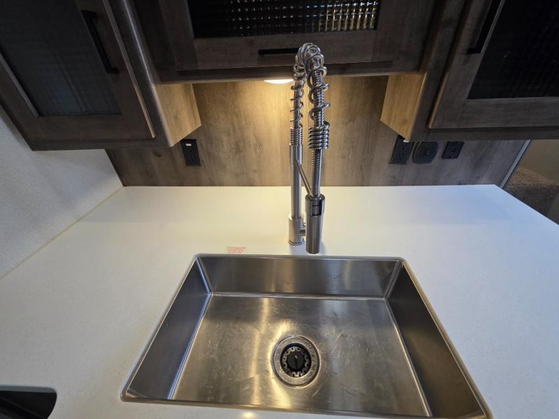 Set out on a redefined adventure with any one of these industry best 100" wide-body constructed Sprinter fifth wheels by Keystone RV! The Tru-Fit slide construction offers a more durable slide room design that minimizes functional motor and structural stress, as well as resists leaking. The in-floor heating ducts allow for more airflow to distribute heat evenly and the Tuf-Lok A/C duct joiners securely joins duct work and A/C units to drastically reduce chilled-air leaks and boost cooling efficiency. The electronic conveniences are outstanding like the wireless remote control that gives you the ability to control your lights, awnings and other features with just a touch of a button on your phone, and the KeyTV to eliminate poor reception.