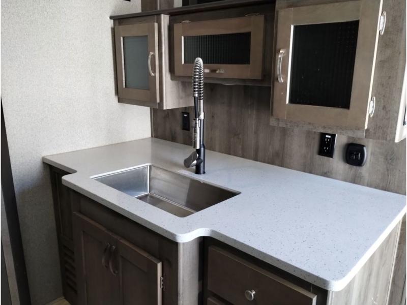 Set out on a redefined adventure with any one of these industry best 100" wide-body constructed Sprinter fifth wheels by Keystone RV! The Tru-Fit slide construction offers a more durable slide room design that minimizes functional motor and structural stress, as well as resists leaking. The in-floor heating ducts allow for more airflow to distribute heat evenly and the Tuf-Lok A/C duct joiners securely joins duct work and A/C units to drastically reduce chilled-air leaks and boost cooling efficiency. The electronic conveniences are outstanding like the wireless remote control that gives you the ability to control your lights, awnings and other features with just a touch of a button on your phone, and the KeyTV to eliminate poor reception.