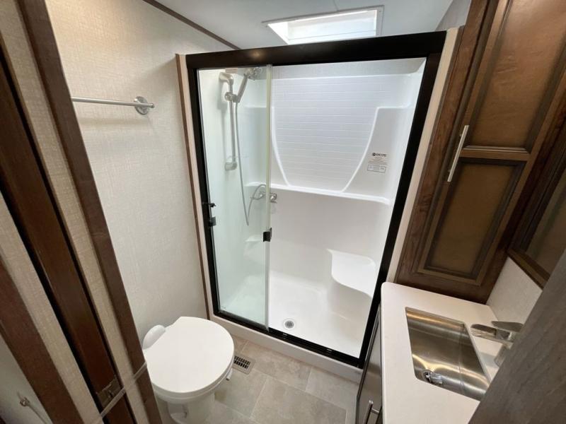 The Durango Gold fifth wheels by KZ are constructed with a six-sided 100% aluminum frame, an extra-reinforced heavy-duty front fiberglass cap, and a fully heated and enclosed underbelly to provide a strong, durable unit. Each model features two fully vented attics which gets rid of unwanted moisture and two 15K ducted A/C's with Quiet Cool Ducting System to keep your family comfortable year round. Inside, you'll enjoy Maple Glazed cabinetry, a bedroom fireplace, tons of storage, and a central vacuum system with attachments. These fifth wheels also include the Durango Gold Towing Package which includes a 2" towing receiver hitch with 4-pin wire harness connection, a 3,000 lb. tow rating, and 300 lb. hitch rating so you can bring your boat along too!
