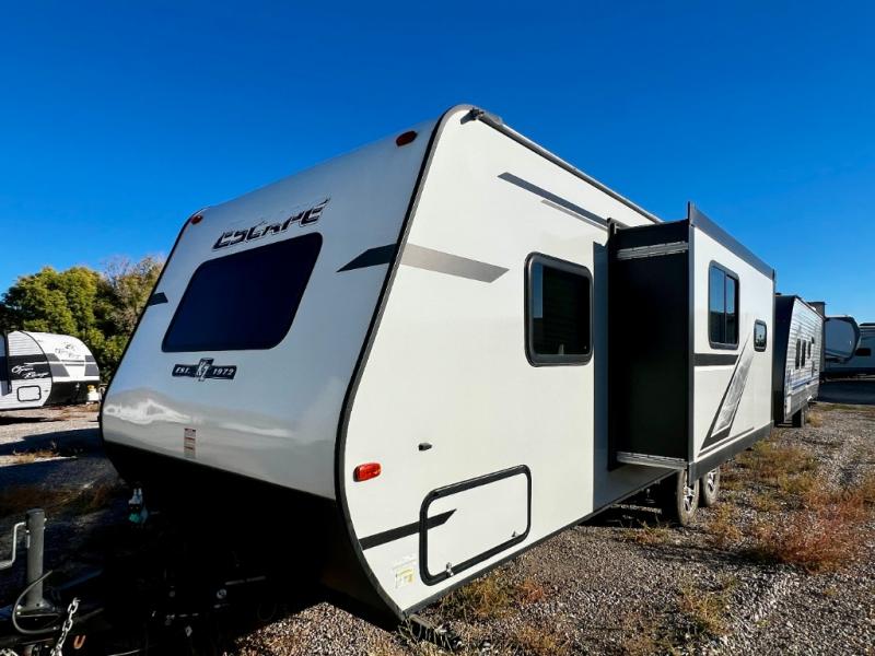 KZ Escape lightweight travel trailer, expandable, or toy hauler models combine comfort and functionality into one. You'll appreciate the Aqualon Edge material on each expandable unit, and the Alum-a-Tough roofing shows that these units have been built to last many years of adventuring. These models include pleated shades, seamless countertops, a shower surround, plus residential grade linoleum to provide a more at-home feel. So come choose your new Escape and show it off to your friends and family!