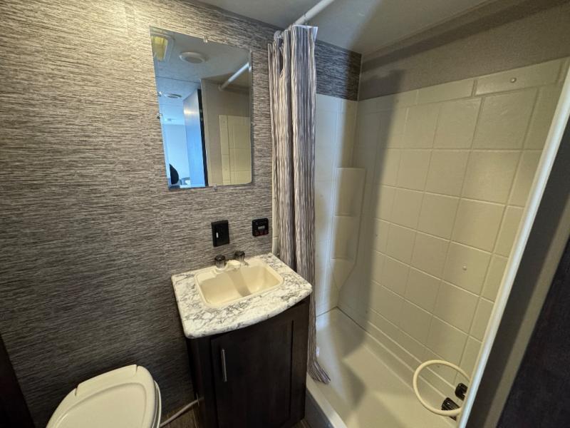 The Sportsmen SE travel trailer by KZ offers residential-grade linoleum for easy clean up, a stainless steel residential kitchen faucet and deep undermount stainless steel kitchen sink, color accented shower walls as a nice touch, dark accent trim on corners/entry doors, and lots of storage for your clothing, dishes, and such. The exterior gives you a one-piece, seamless, walk-on Tufflex roofing material, fully walk-on roof decking, an aerodynamic front profile with smooth metal front, three-toned exterior metal, and has been prepped for solar power and a backup camera. Start saving money and enjoy camping, choose the trailer that fits your wants and needs!