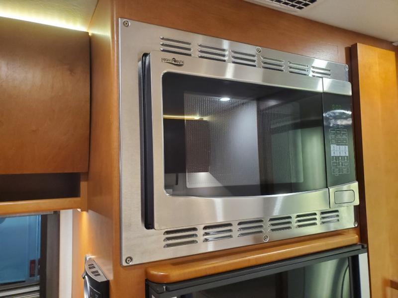 With a large residential-style bathroom in this motorhome, you will enjoy every moment you spend cleaning up in the radius shower and the skylight above will deliver more height and extra sunshine to illuminate the entire space. During the day you can host friends and family with the swivel cab chairs and standard Leisure Lounge or choose to add the optional Leisure Lounge Plus. Once the party has ended, you can rest peacefully for the evening after you've turned down the Murphy bed. The next morning you might decide to make breakfast on the cooktop or in the convection microwave, and serve from the flip-up counter extension or on the Corian solid surface countertops.